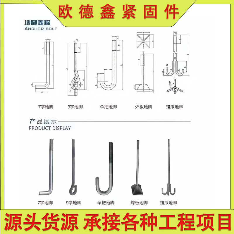 不锈钢地脚螺栓高强度7字9字伞把热镀锌预埋地脚丝 l型焊板