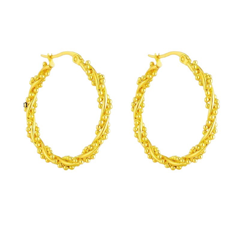 欧美风夏季耳圈女 小众设计感圆圈耳扣时尚简约麻花波珠耳钉耳饰