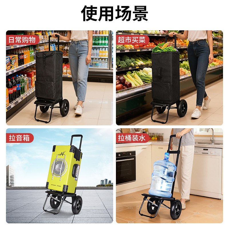 承重升级铝合金伸缩拉杆买菜大轮拖车便携购物搬运折叠物流手推车