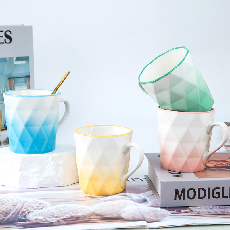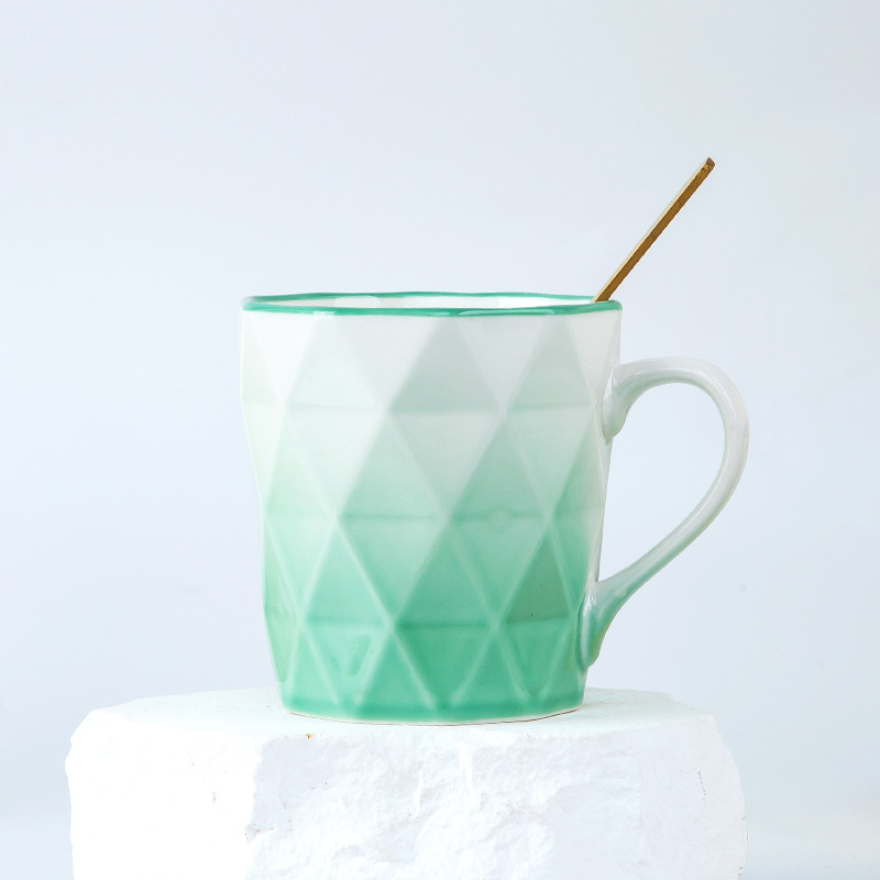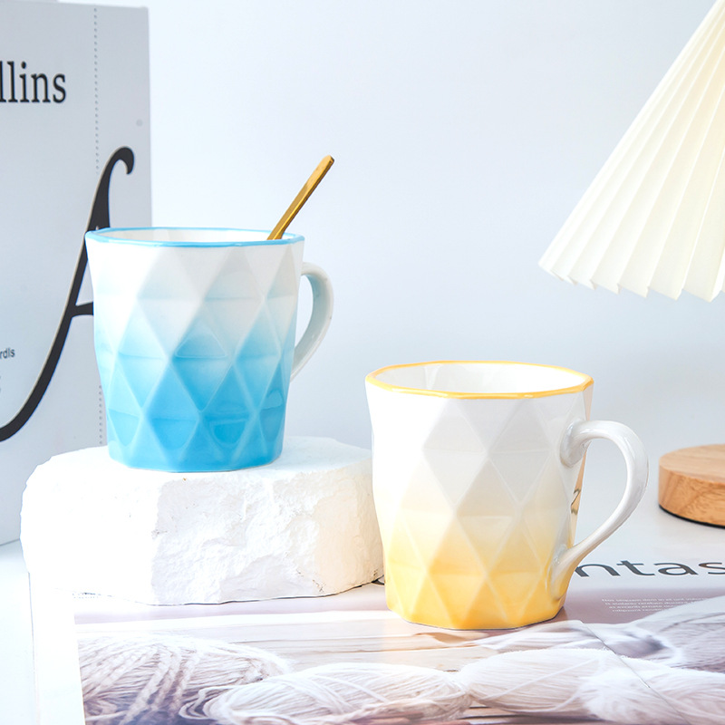 创意菱形马克杯渐变陶瓷水杯北欧定制厂家批发陶瓷杯