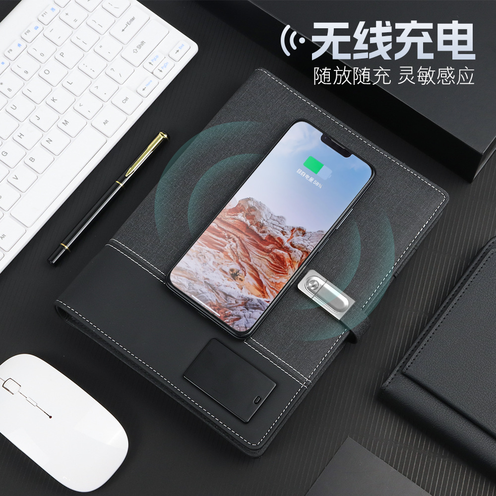 多功能活页本LED台灯无线充电笔记本带U盘充电宝记事本商务礼品