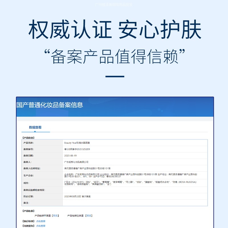 化妆品功效 | 补水保湿 | | 非特化妆品备案证号 | 粤G妆网备字2019230908 |