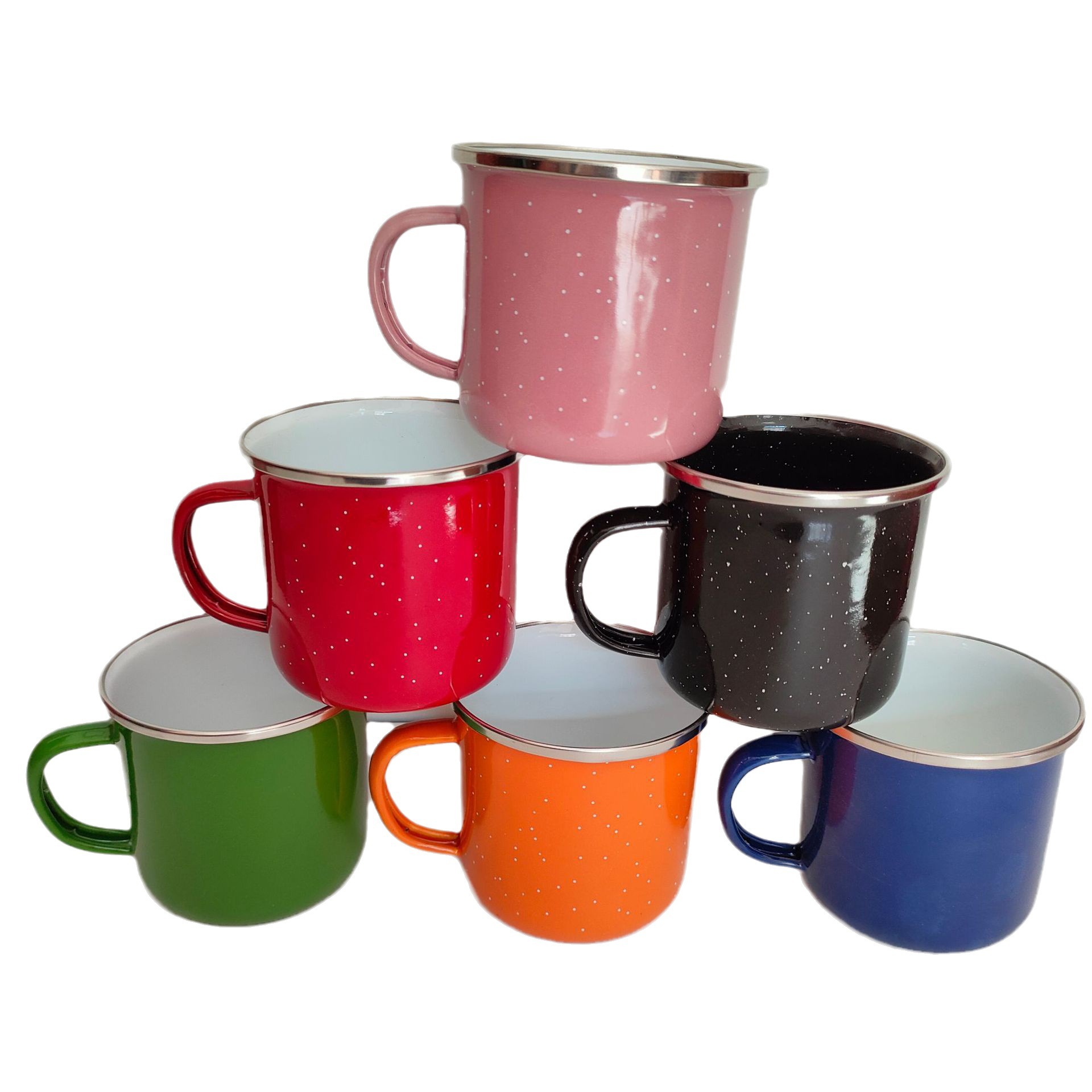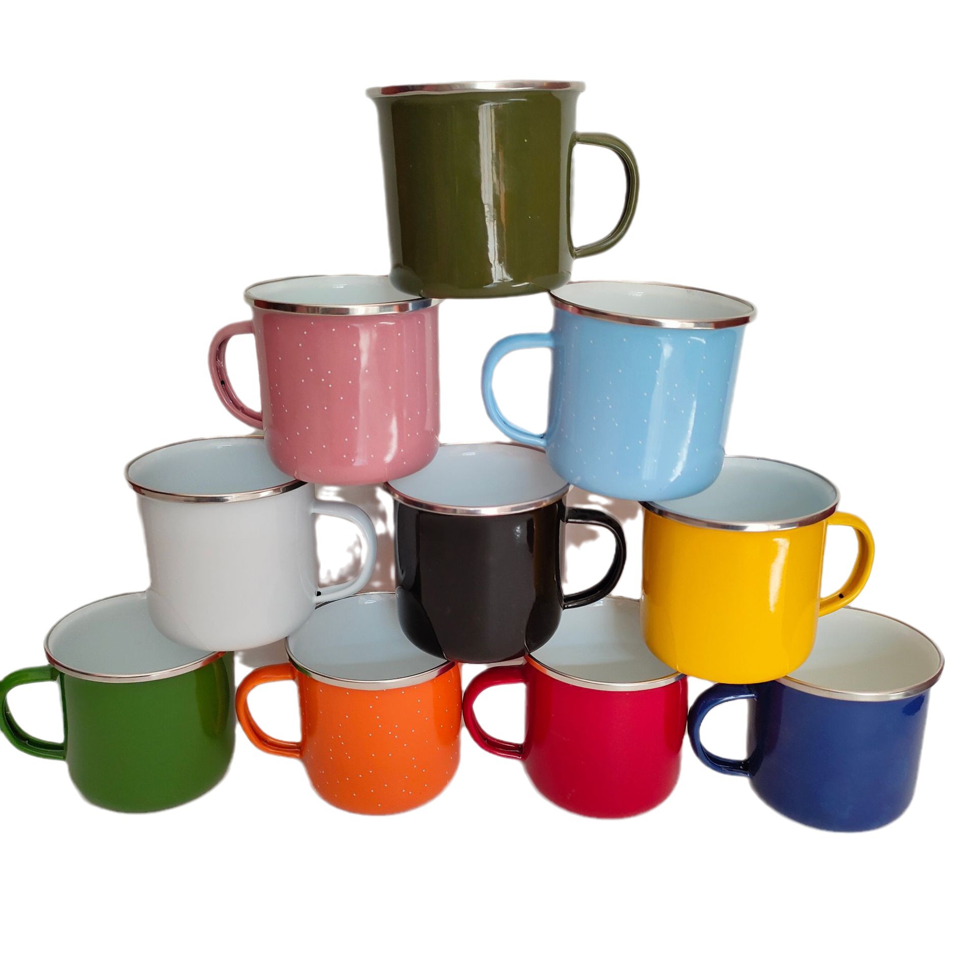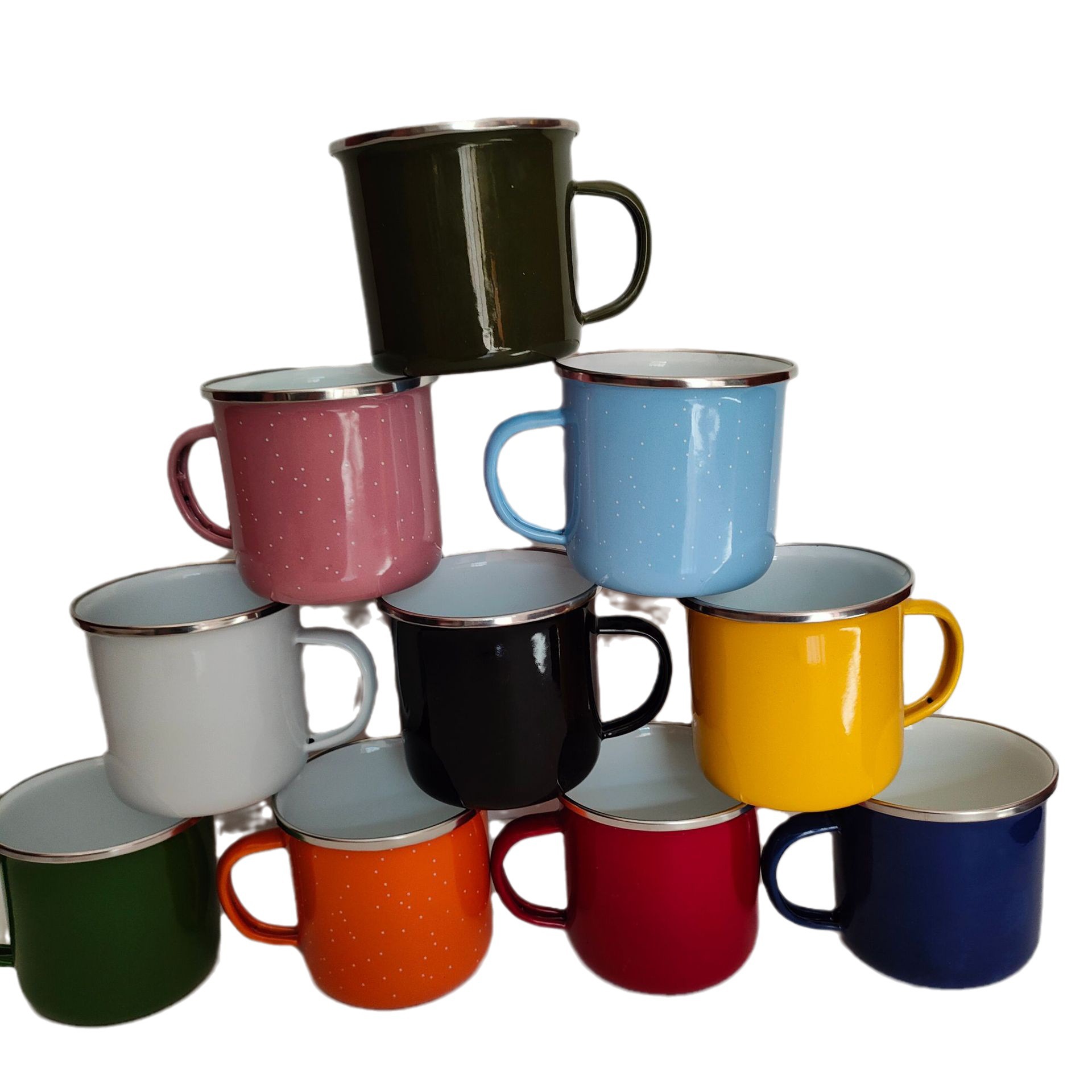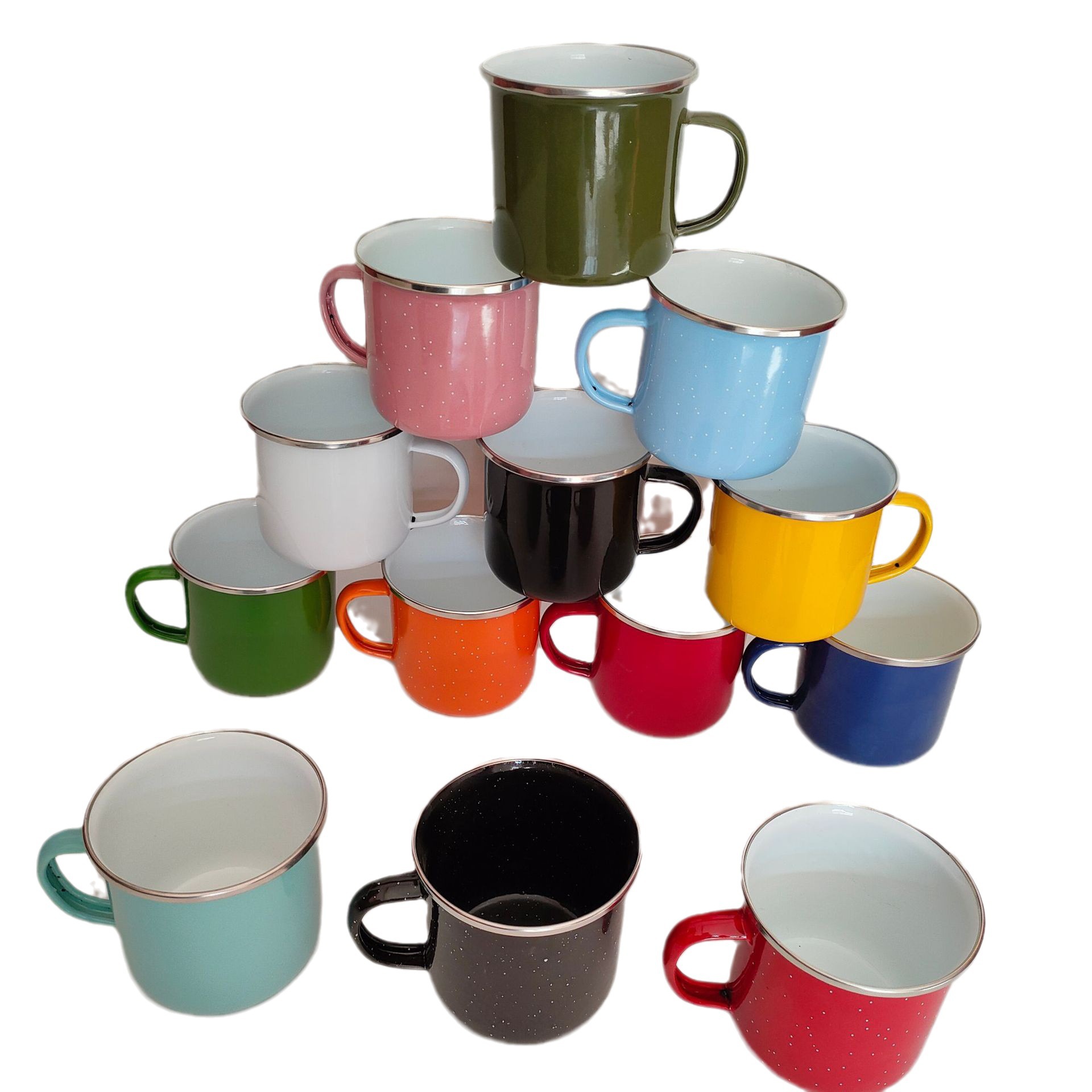 里白外彩珐琅杯怀旧搪瓷杯复古马克杯水杯搪瓷杯咖啡杯加印LOGO