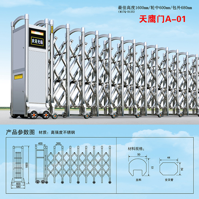 不锈钢伸缩门电动收缩门遥控大门学校自动厂房智能感应防水伸缩门