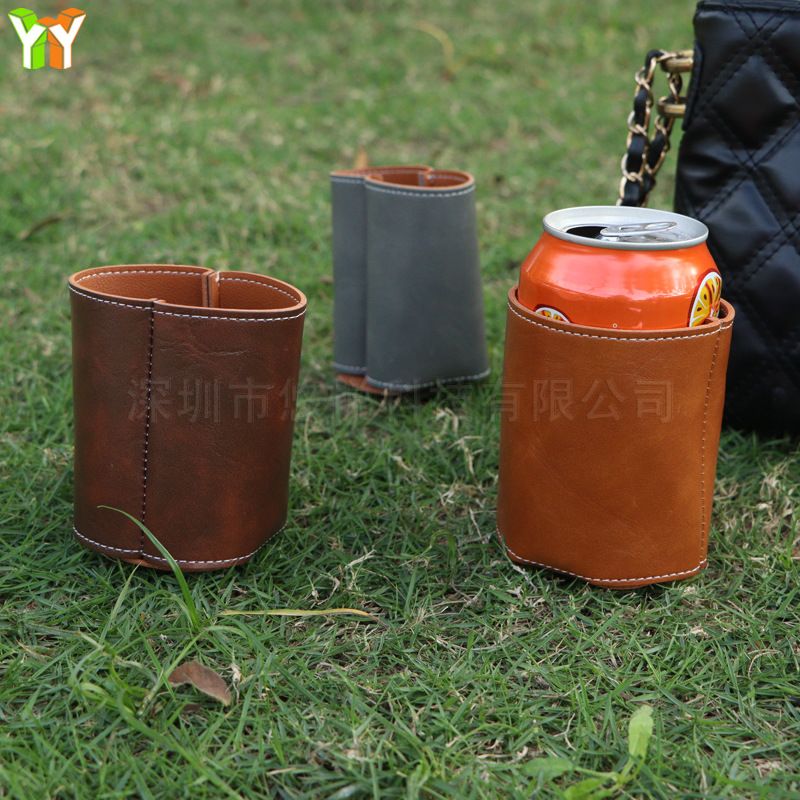 现货复古易拉罐啤酒皮套PU皮革啤酒瓶套饮料杯套罐装可乐瓶皮套