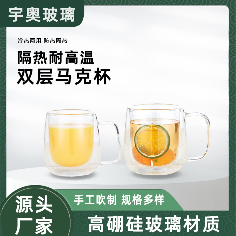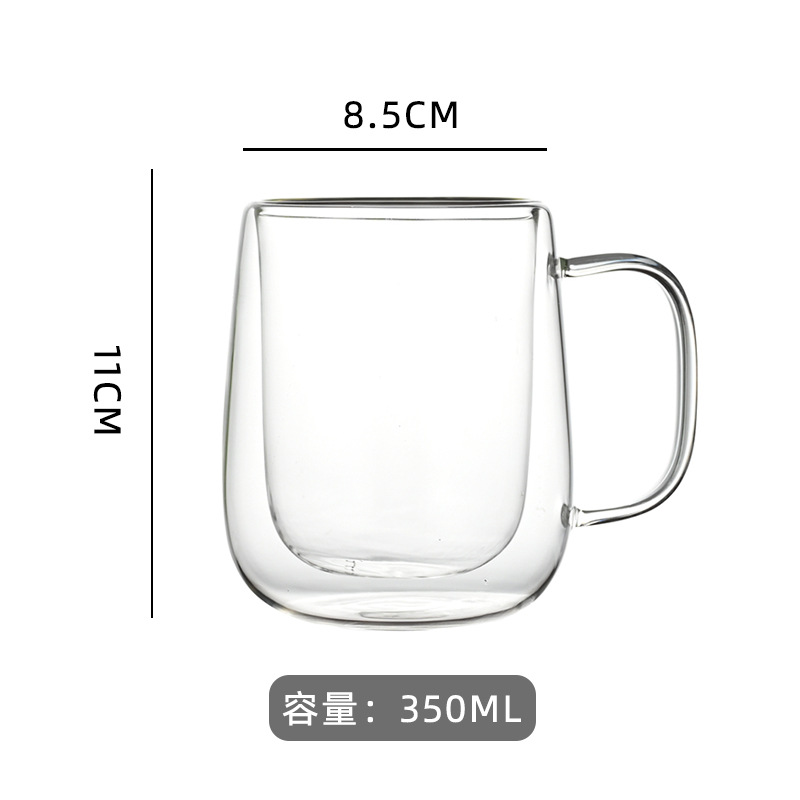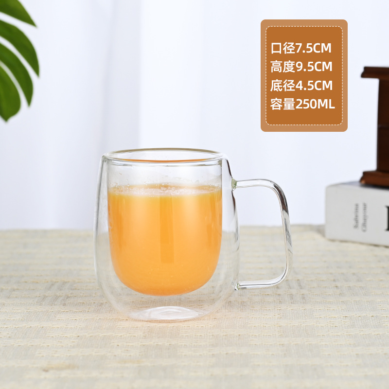 工厂定制创意家用牛奶咖啡杯办公室隔热双层马克杯带把双层玻璃杯