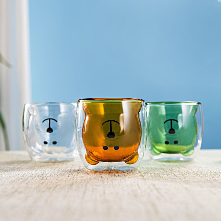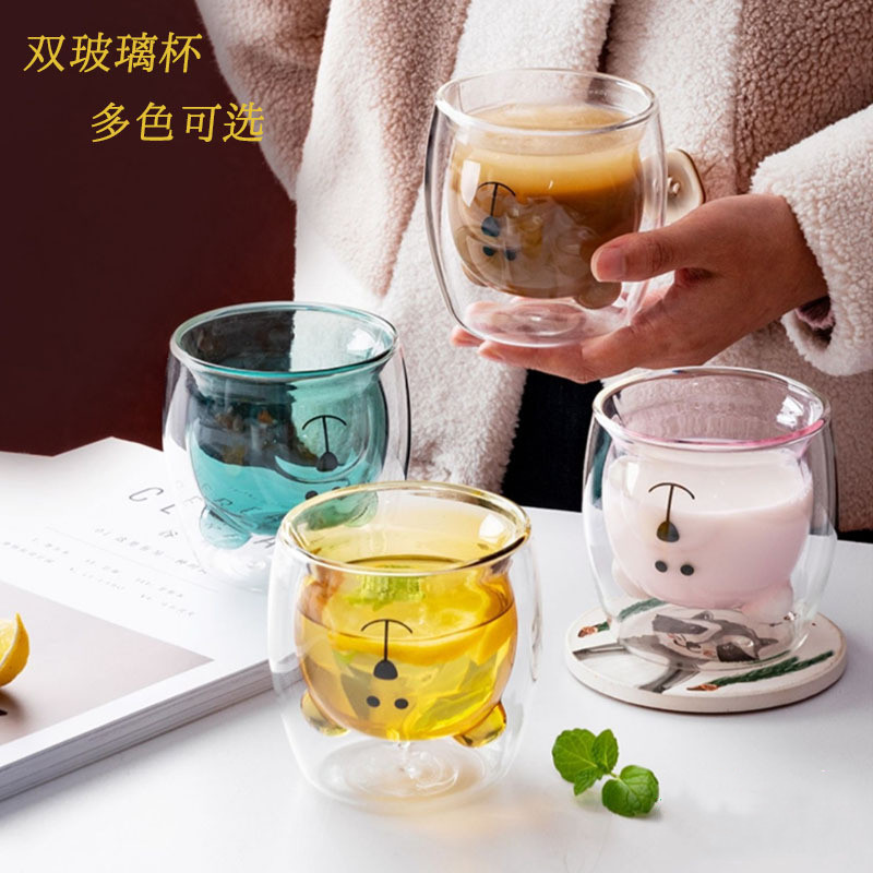 跨境小熊杯双层玻璃杯高硼硅透明隔热玻璃咖啡杯蛋形透明隔热茶水
