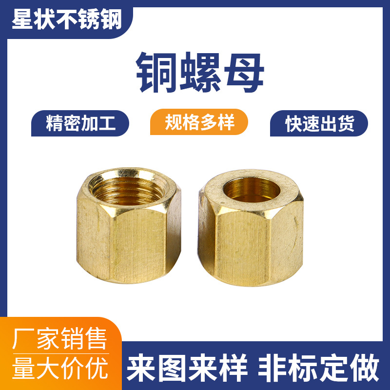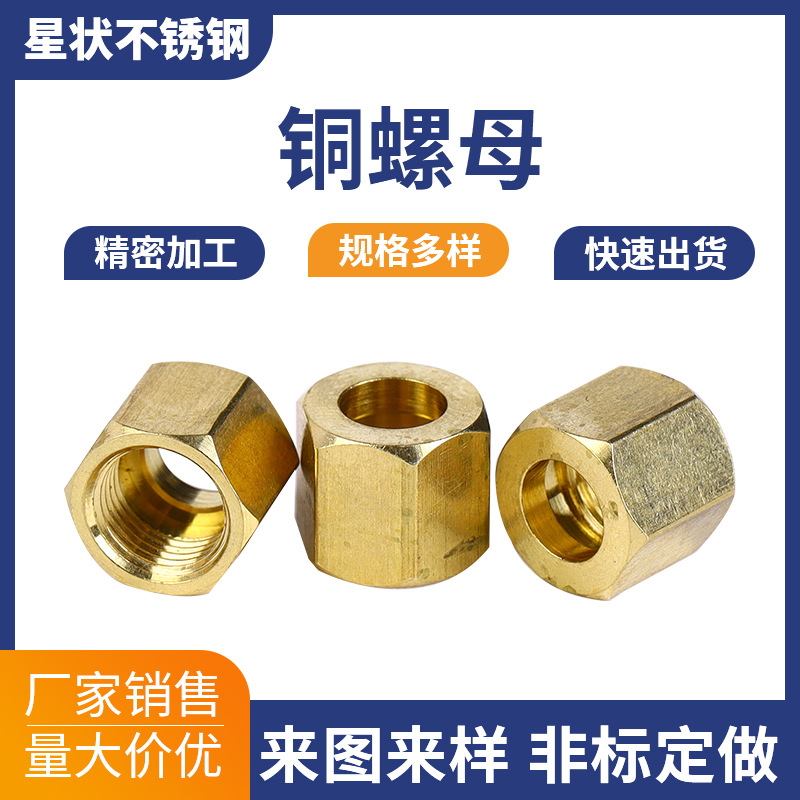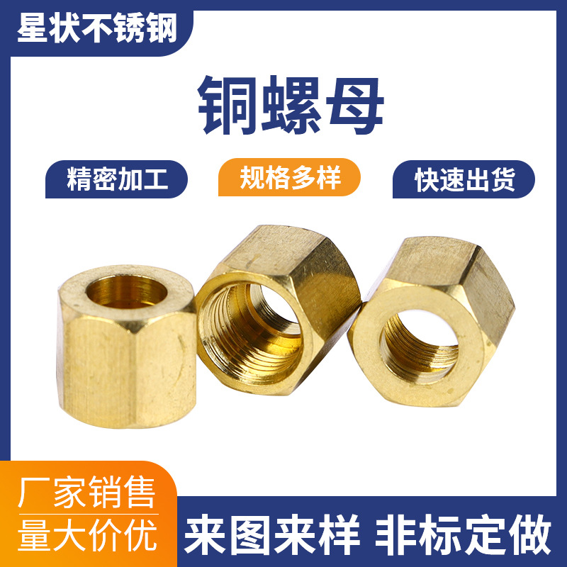 定制非标铜螺母铜螺帽外六角螺母螺丝帽内丝螺母支持来图来样定制