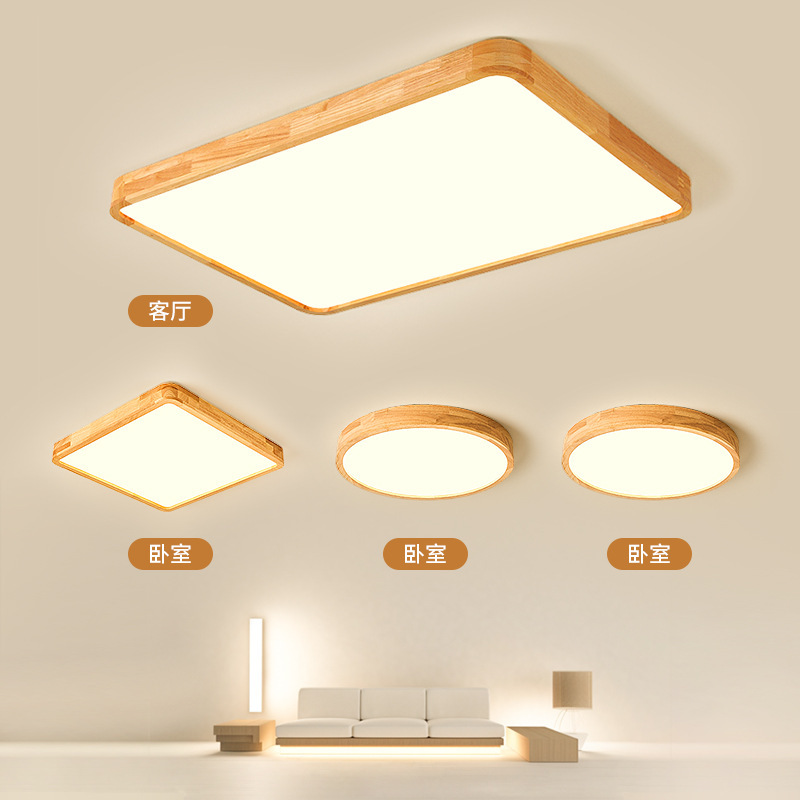 日式原木风LED吸顶灯主卧室灯北欧实木客厅灯现代简约家用阳台灯