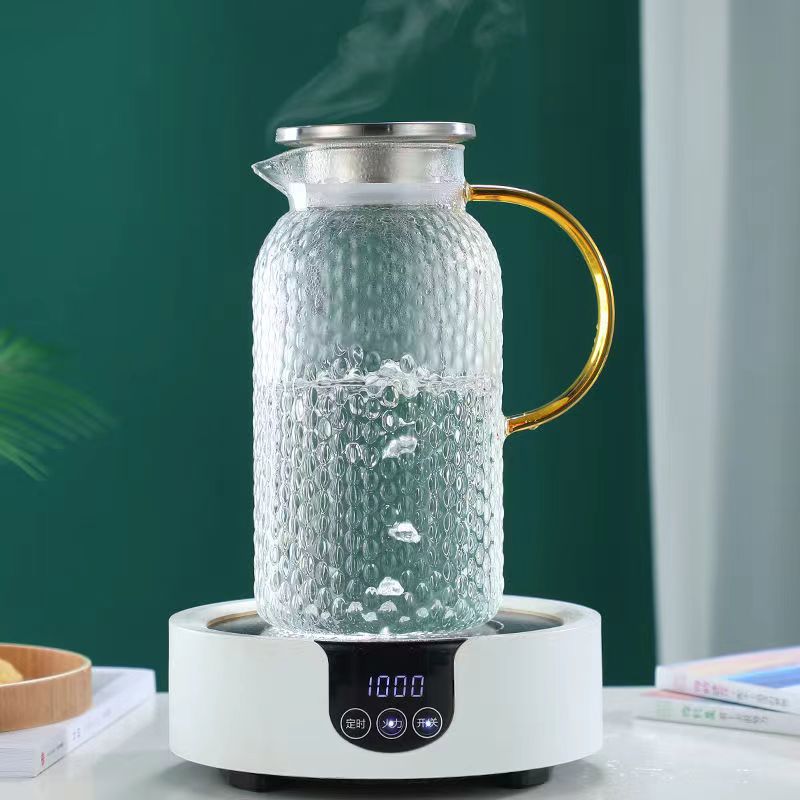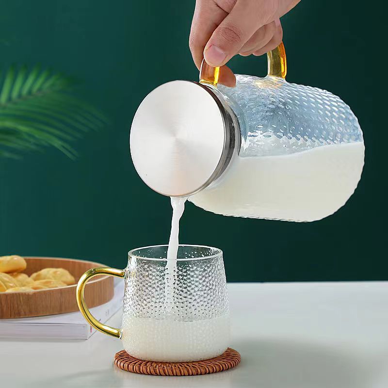 日式凉水壶家用耐高温玻璃套装锤纹米粒壶夏季大容量防爆泡茶壶