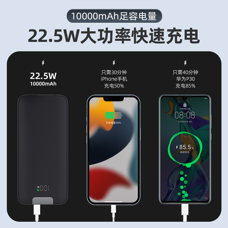 新款自带线发光logo快充移动电源 彩色logo背光礼品充电宝定制
