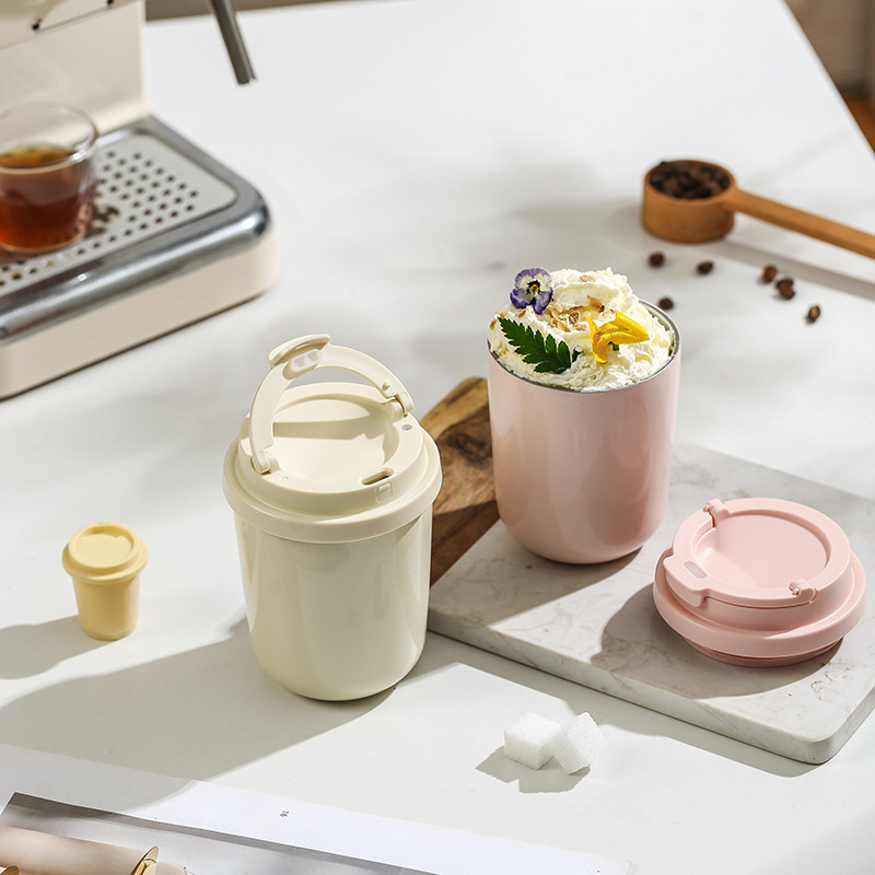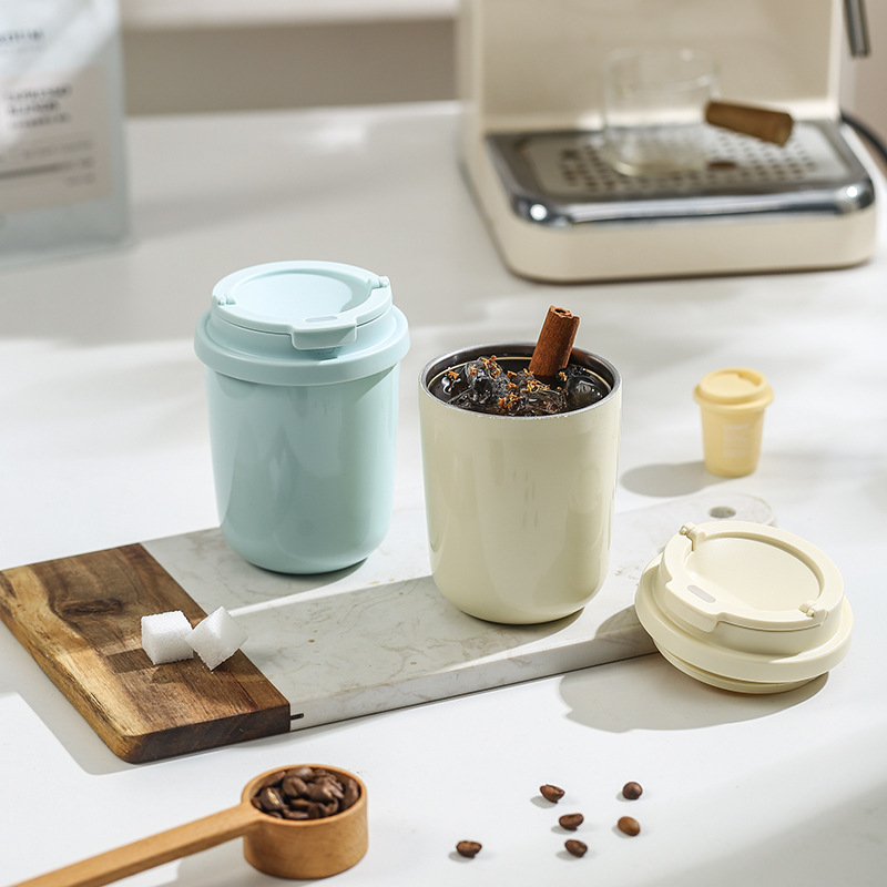 新款小巧高颜值加厚316不锈钢咖啡杯女生家用带盖保温杯杯子批发