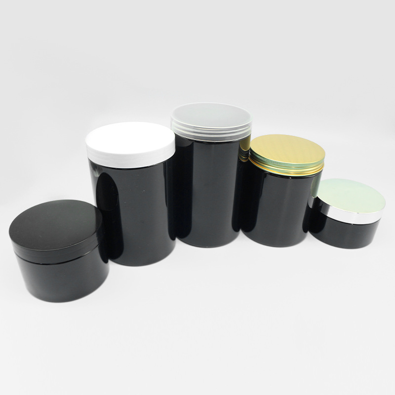 现货黑色塑料罐 500/1000g大容量广口瓶罐 pet塑料面霜分装罐子
