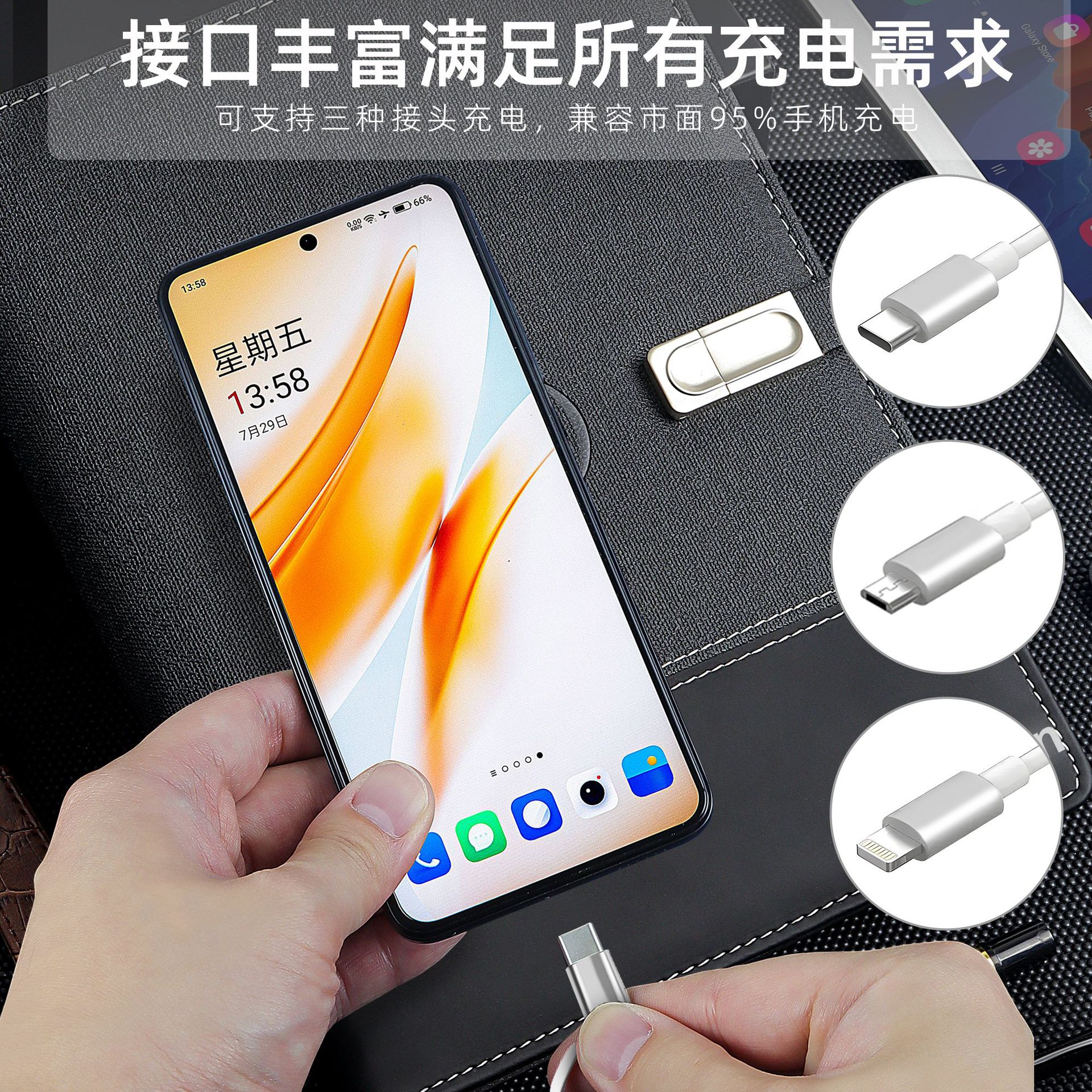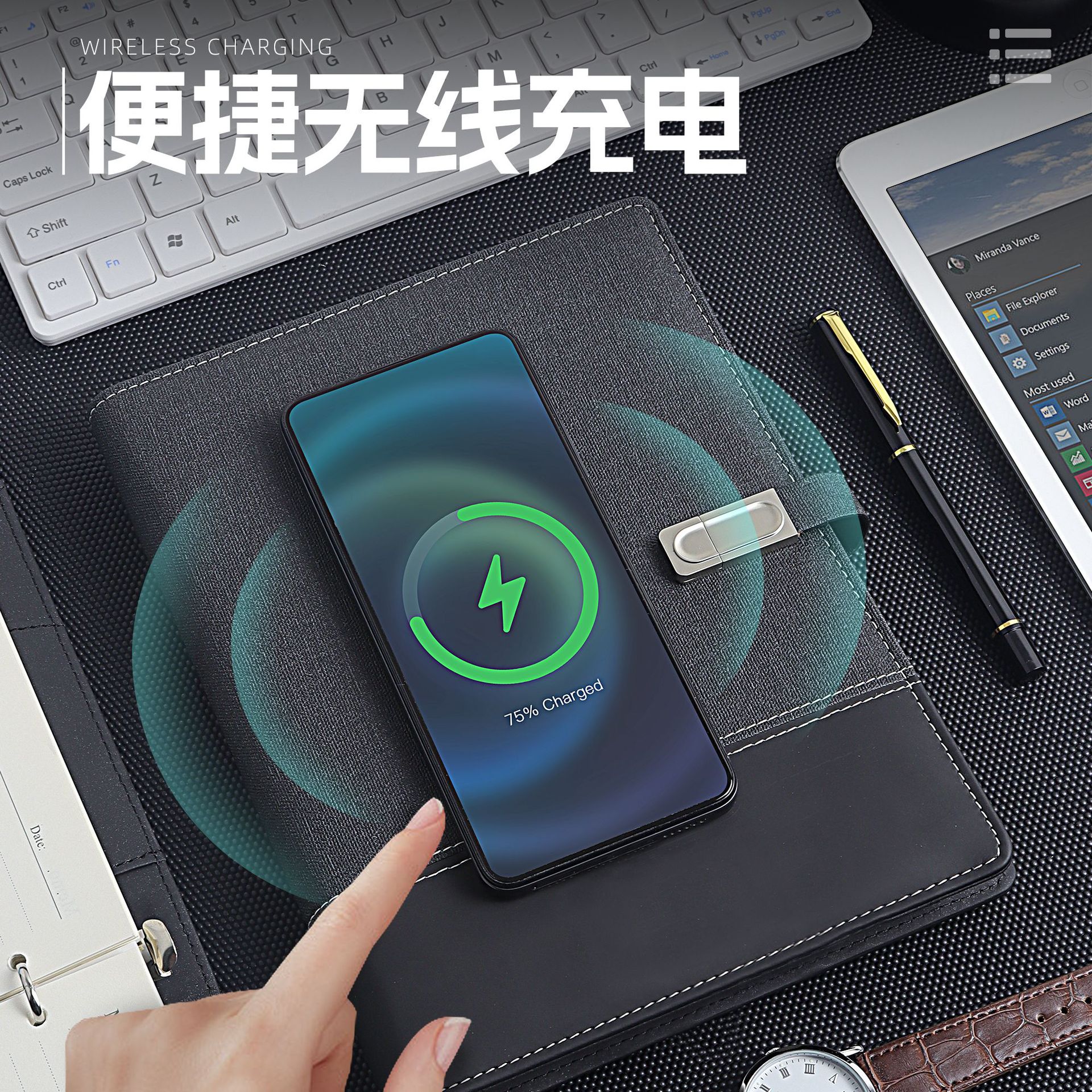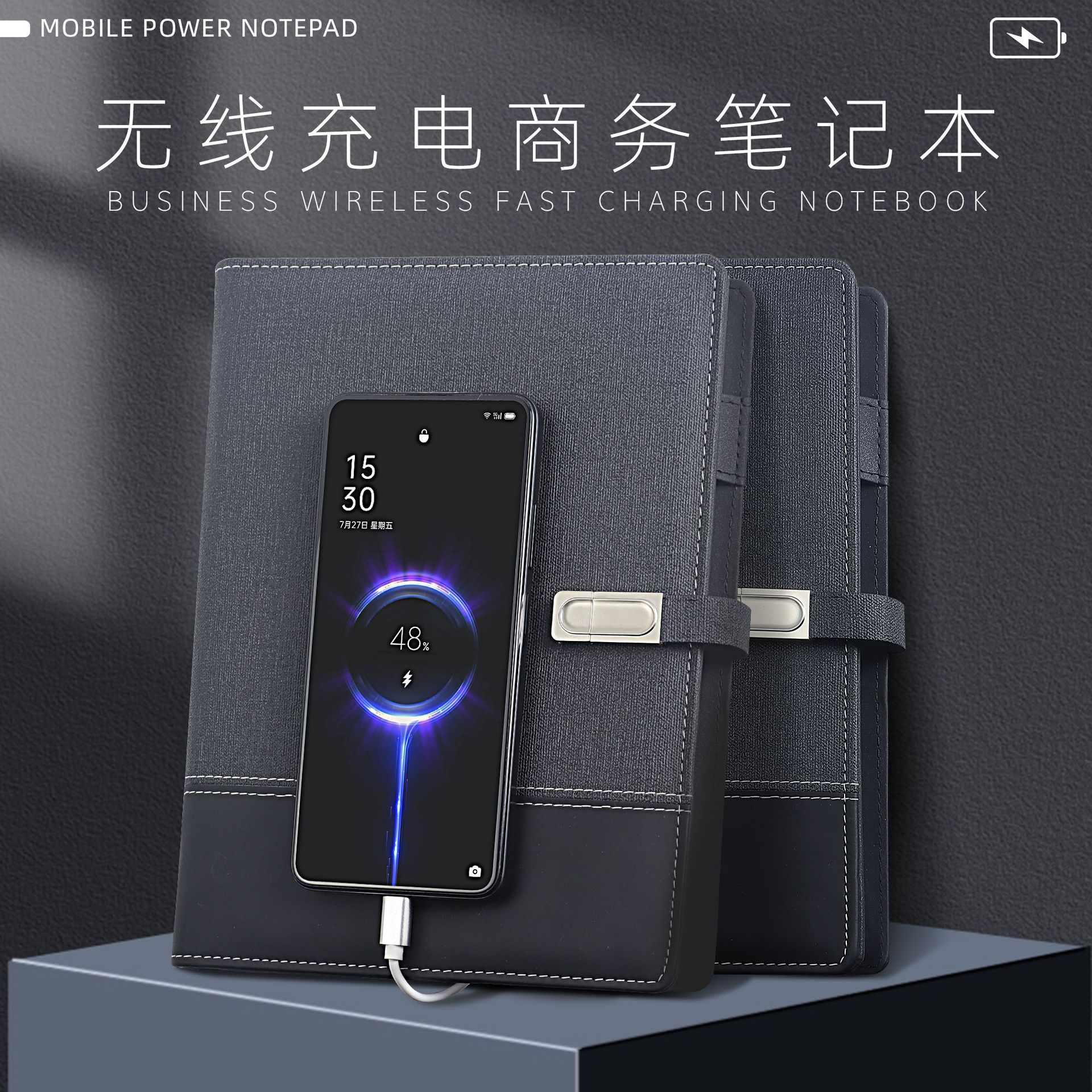 A5多功能活页充电笔记本带U盘无线充电本 商务礼品套装 印刷logo