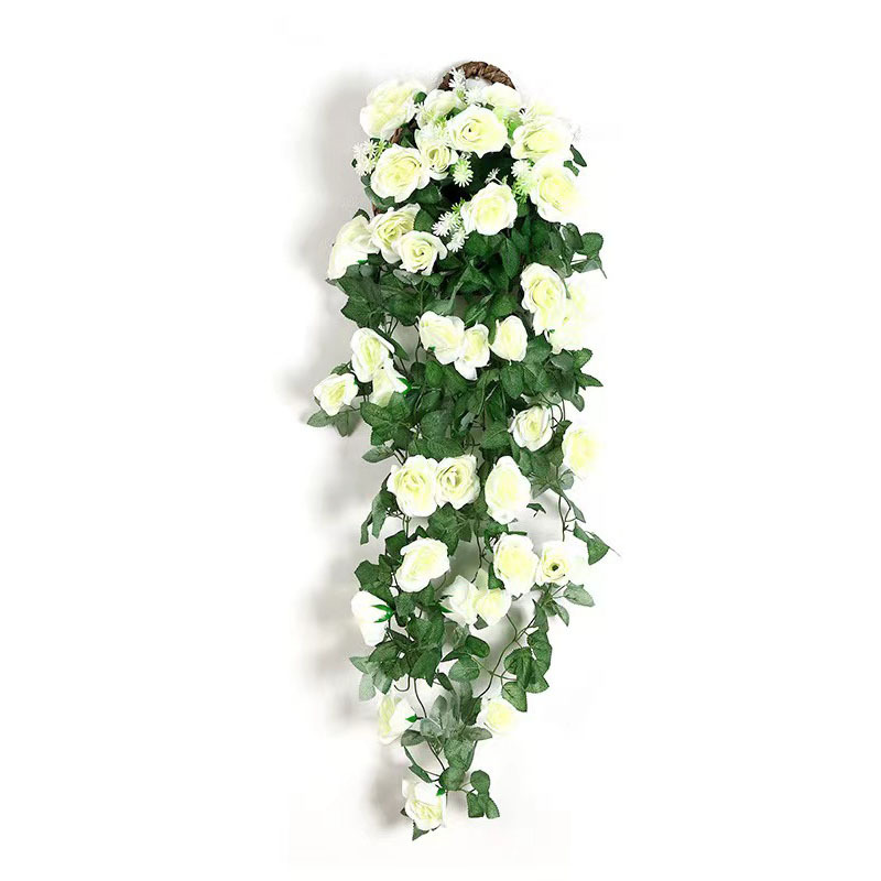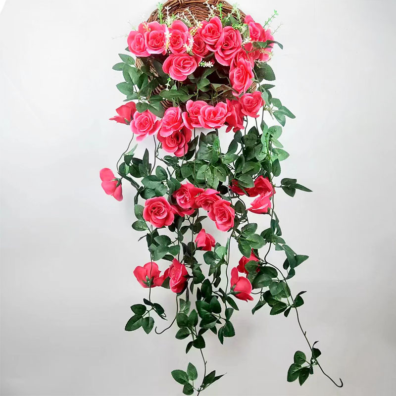 仿真玫瑰花壁挂阳台家具墙体装饰吊兰花藤室内客厅玫瑰花壁挂藤条