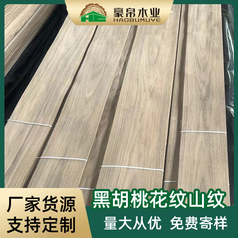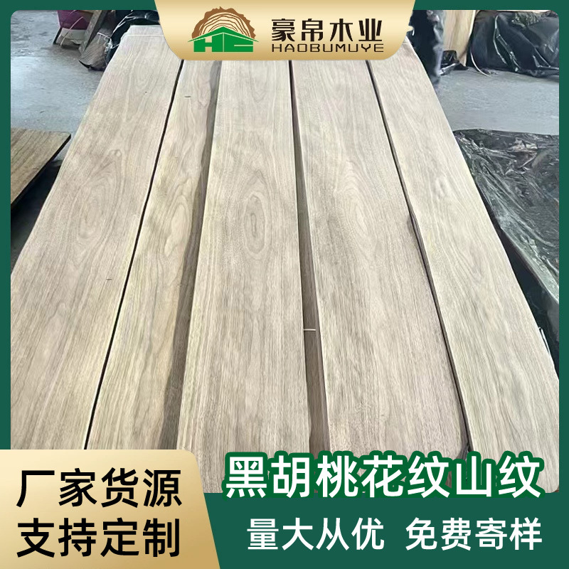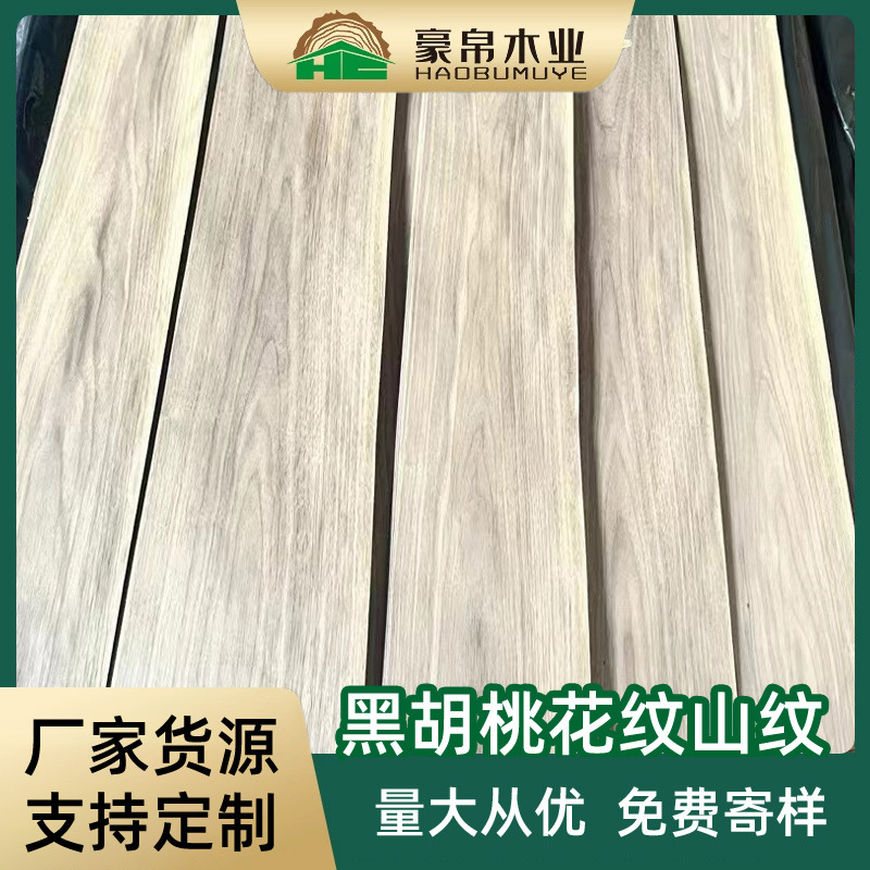 天然黑胡桃花纹山纹木皮厚皮贴面家具饰面板地板实木贴皮厂家批发
