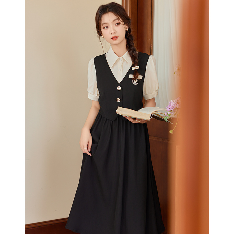 法式学院风假两件连衣裙女2025夏季新款正式场合教师教资面试长裙