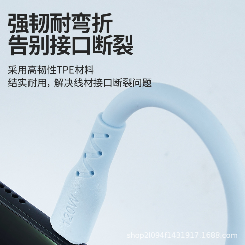120W加粗TPE快充数据线适用于type c安卓 苹果源头工厂