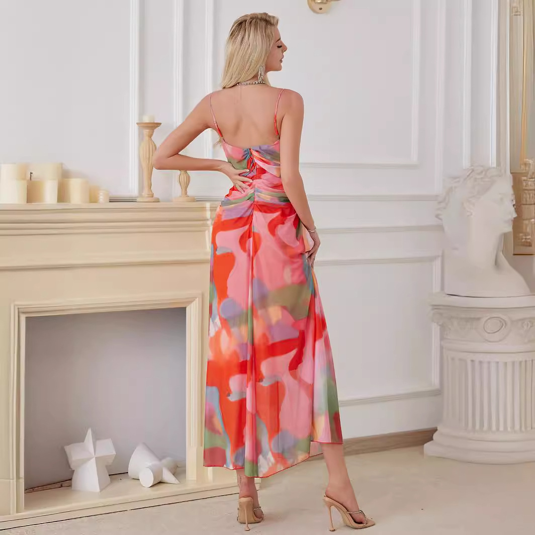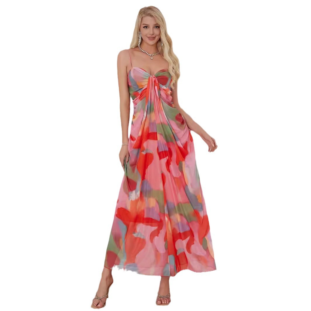2024夏季新款吊带款渐变印花性感连衣裙修身轻熟显瘦