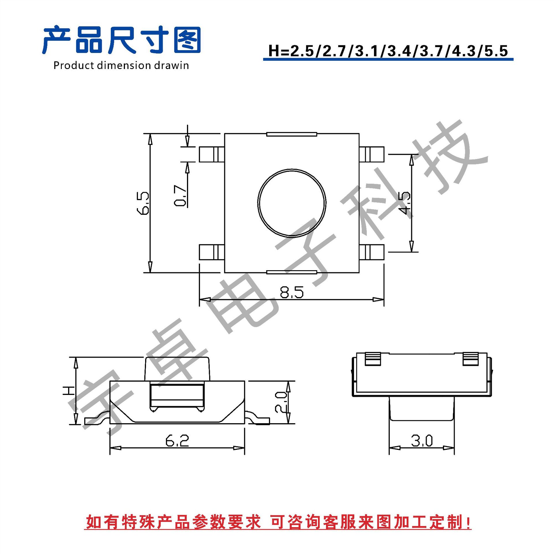 按键开关 6.2*6.2*2.5-5.5H 四脚贴片黑红钮 6.2*6.2轻触开关