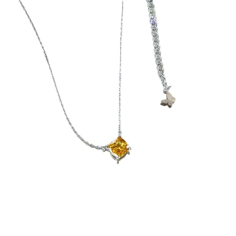 夏季吸财黄色小方糖皓石项链通体S925银清冷百搭叠戴项链