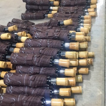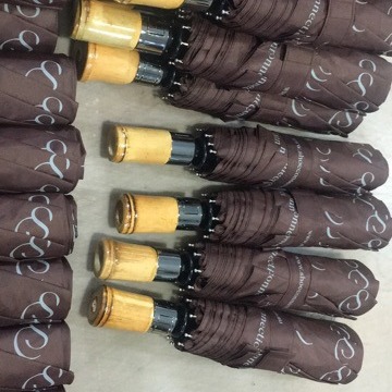 竹子手柄21寸8骨三折全自动折叠碰击布料纤维骨防晒遮阳晴雨伞
