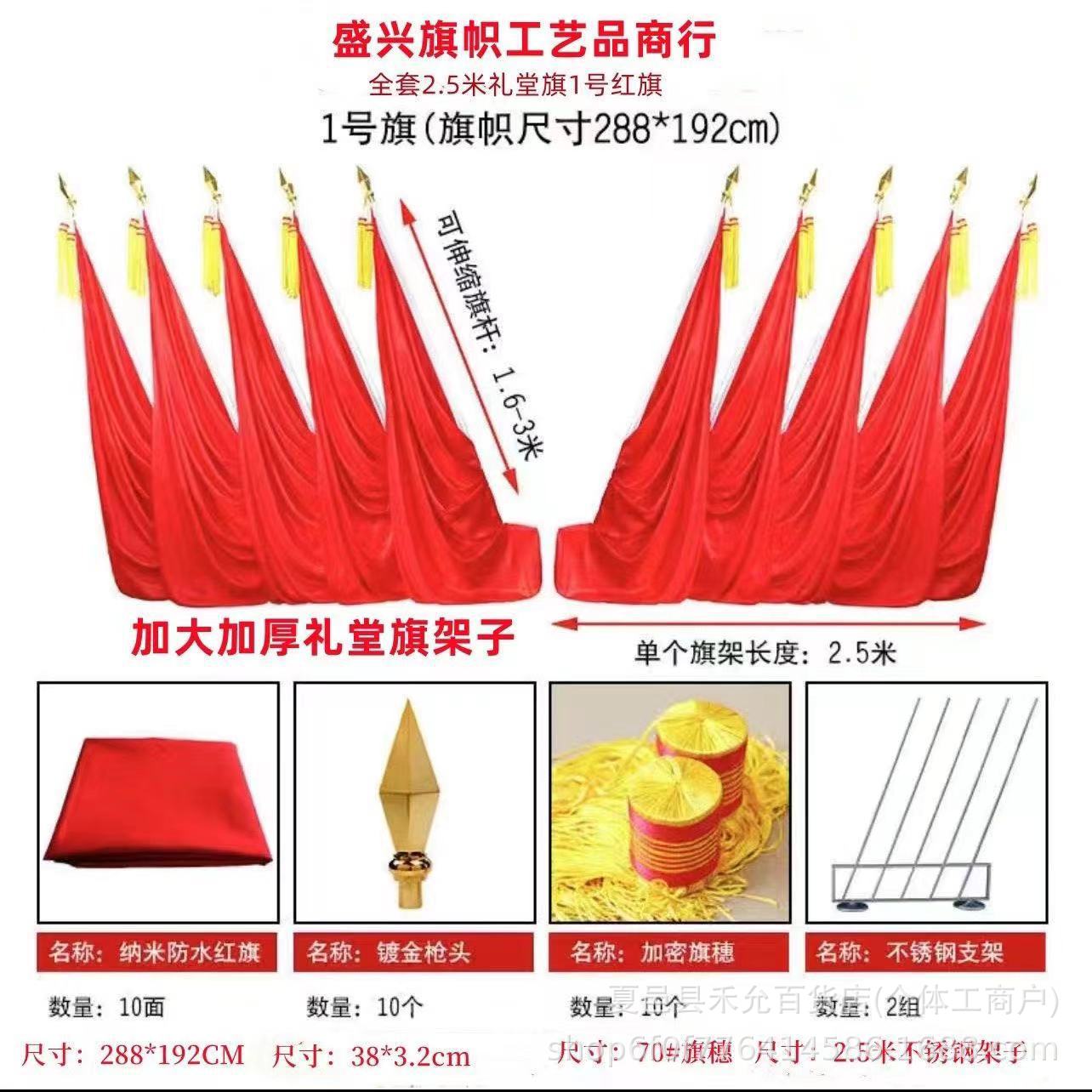 尺寸 | 2.5米2号红旗 | | 尺寸 | 60公分党徽 |