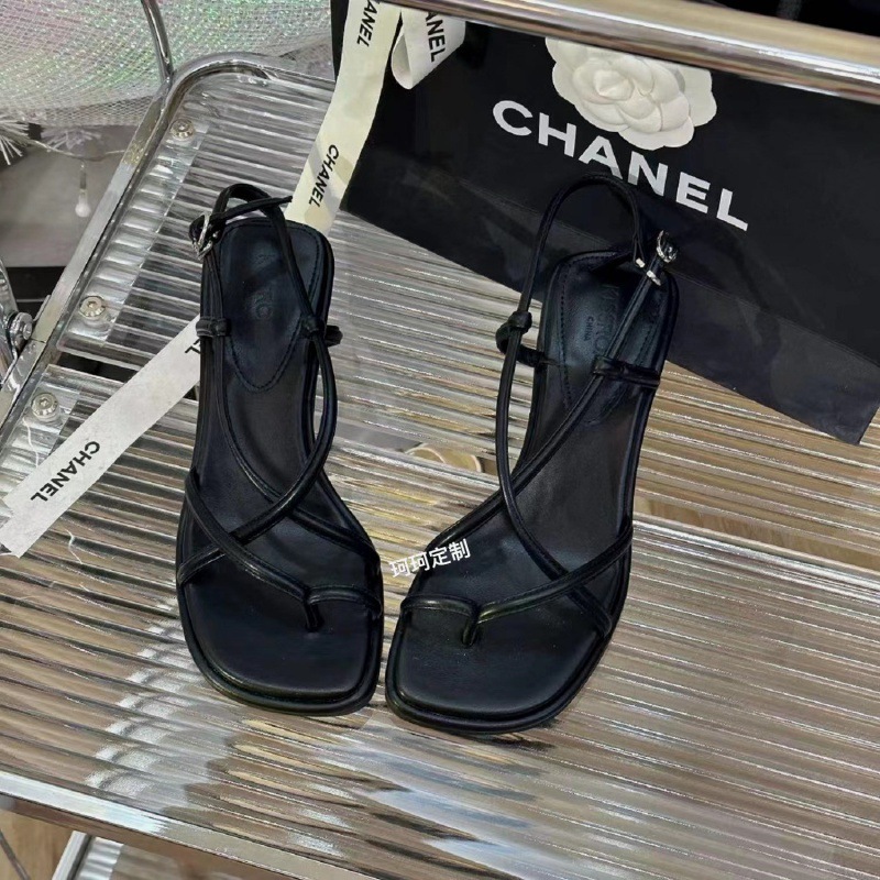 踩屎感粗跟凉鞋女夏新款法式气质高跟鞋一字带夹趾罗马凉鞋女外穿