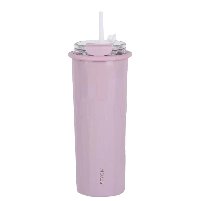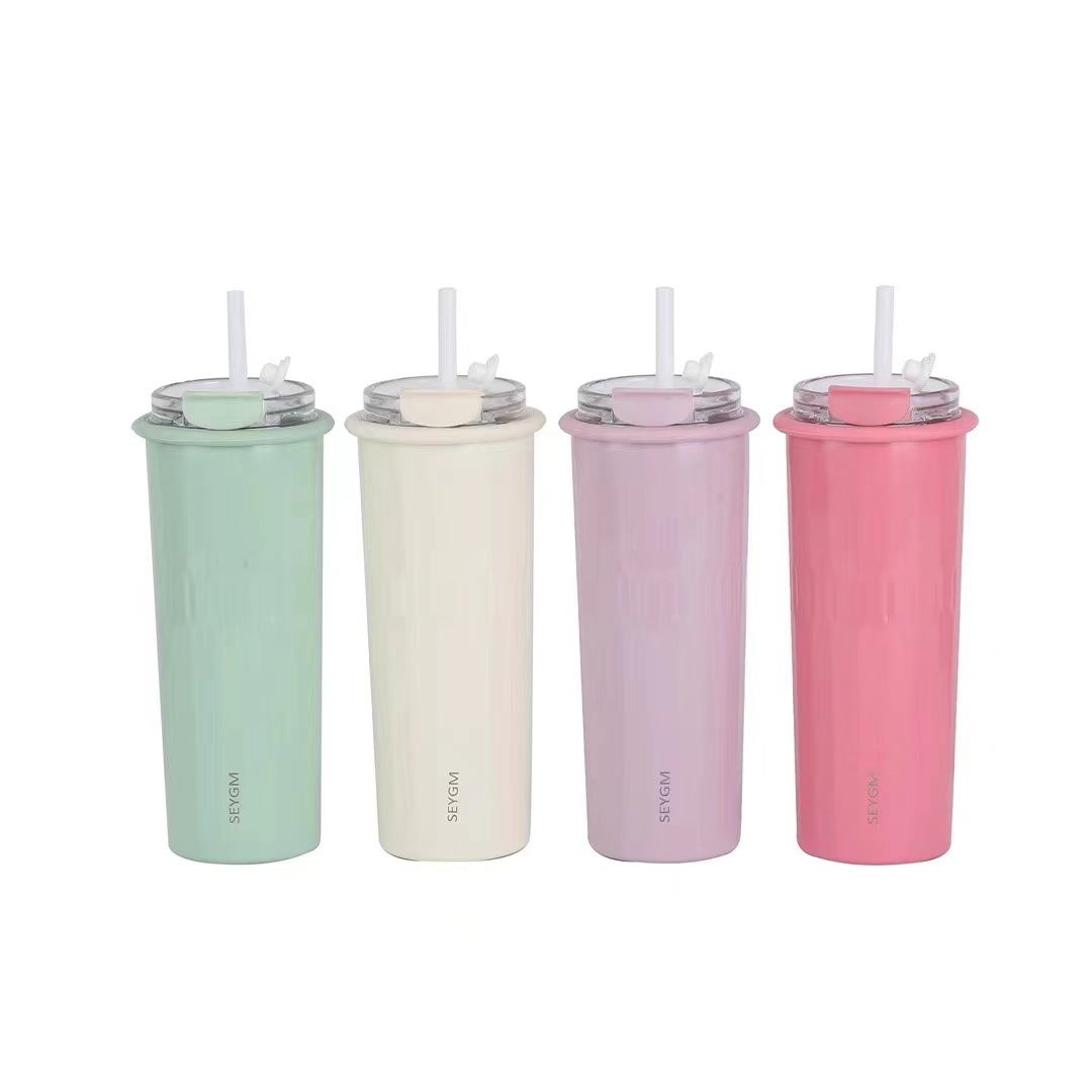 新款家用高颜值吸管杯加厚304不锈钢保温杯户外运动便携式水杯