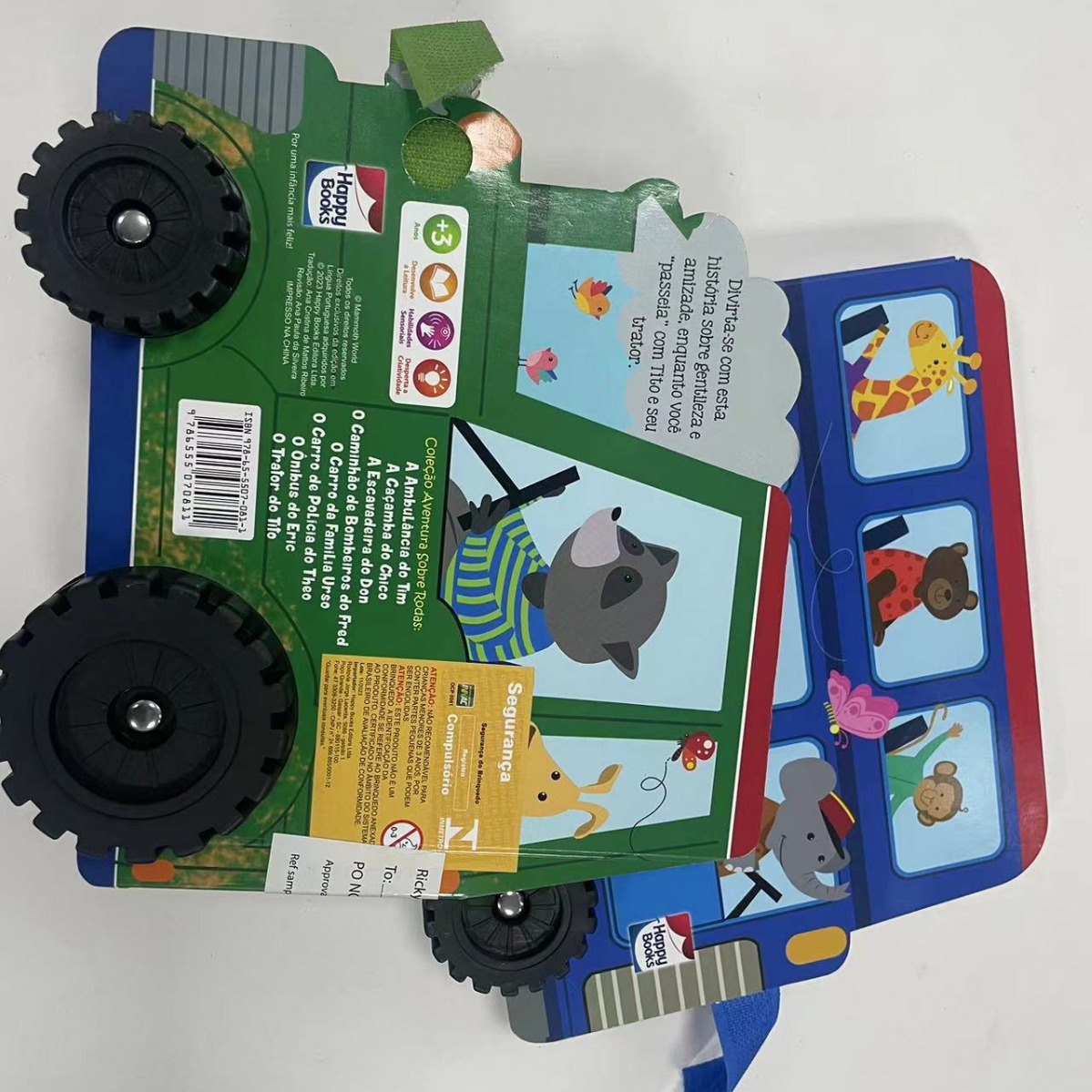 材质 | 卡书车 异形,模切工艺,尺寸19*16cm,材料白卡,对裱后厚底一样2.3mm,封面封底+内页共5 | 尺寸规格 | 19*16cm |
