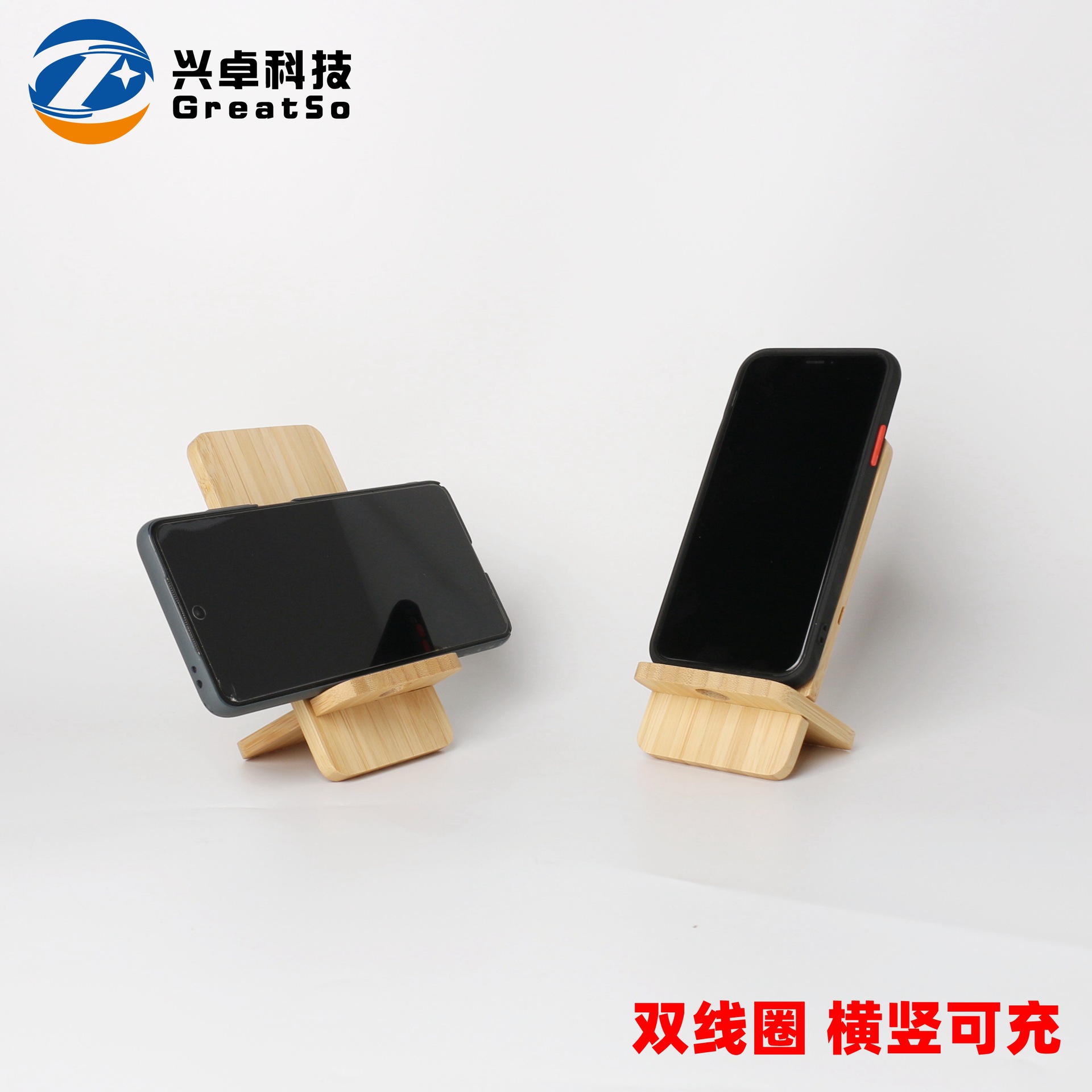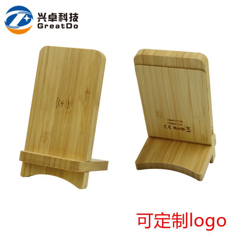 15W可拆卸竹木无线充手机支架 立式木头竹子单双线圈无线充电器
