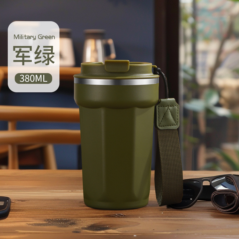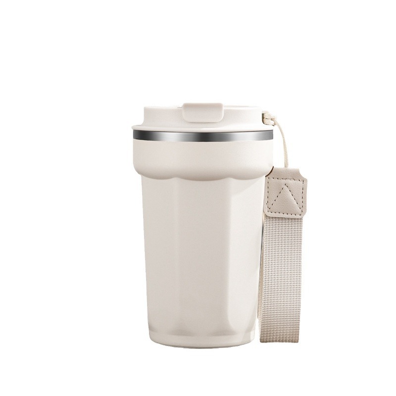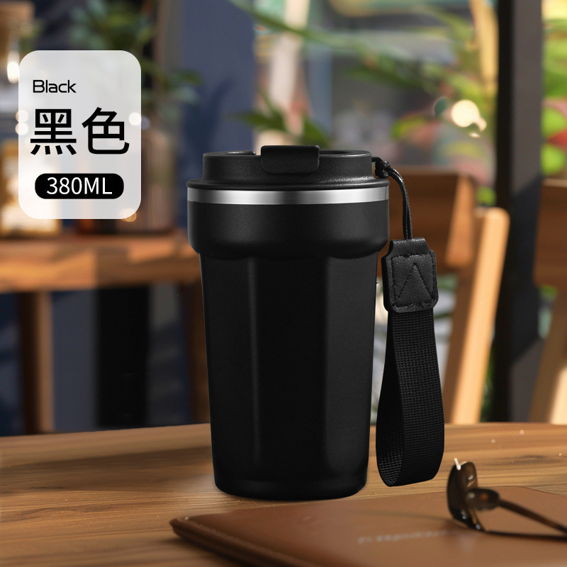新款304不锈钢四代八角咖啡杯车载真空保温杯便携提绳户外随行杯