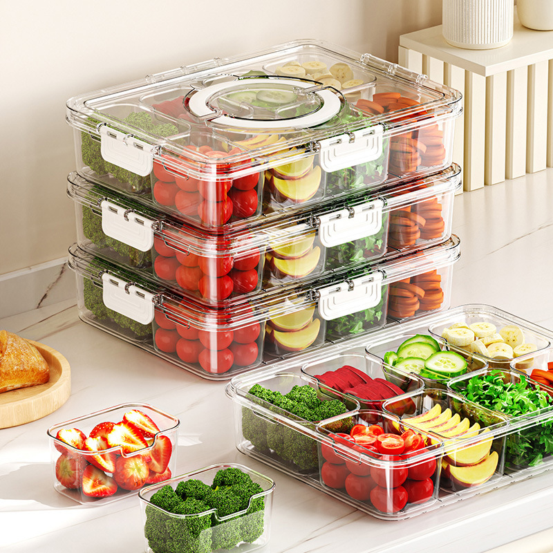 食品级透明八分格果盘分装香料盒子厨房冰箱保鲜密封盒沙拉收纳盒