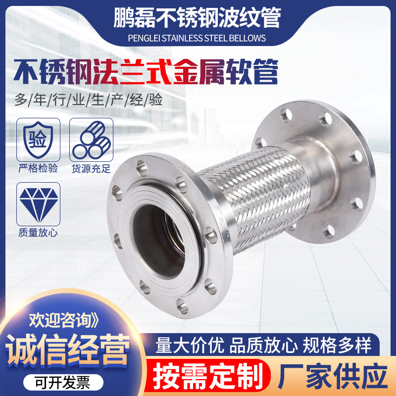 304不锈钢法兰式金属软管钢丝编织金属软管耐磨高温高压波纹管