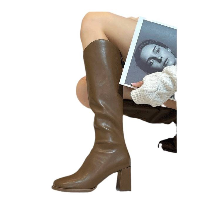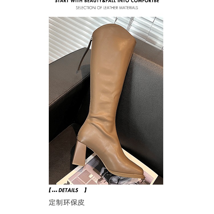 时尚高跟V口长筒靴女设计感小众秋冬加绒不过膝骑士靴高筒长靴