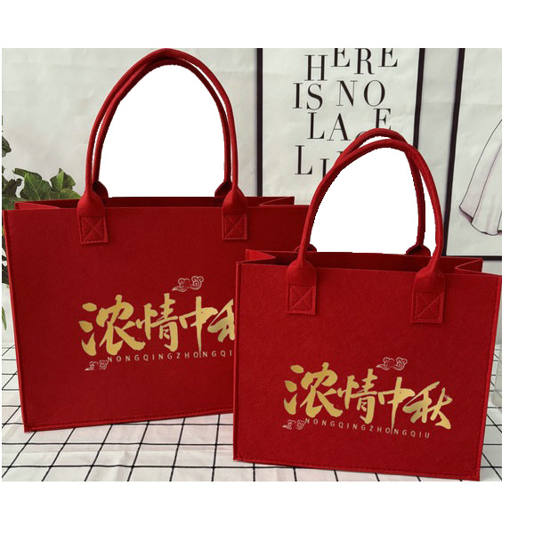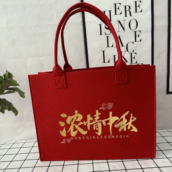 定制新款创意毛毡包浓情中秋字样简约手提袋出行必备小众潮流毛毡