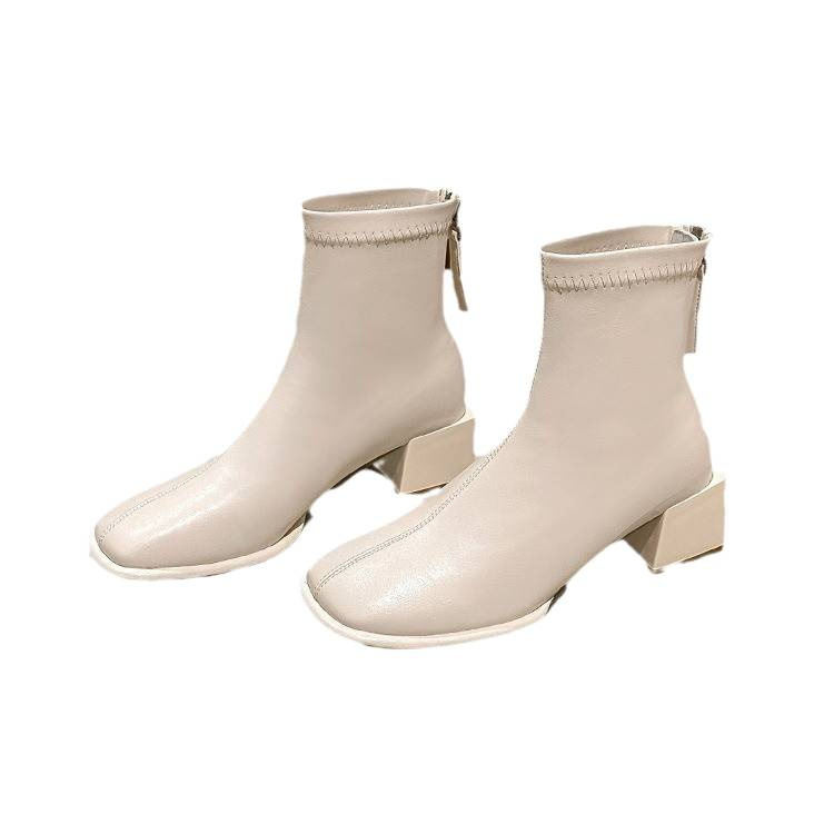西遇弹力瘦瘦靴女2025新款秋季炸街洋气切尔西靴子白色高跟小短靴