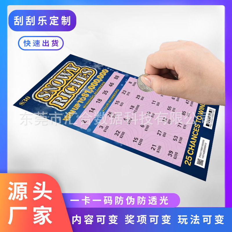 刮刮乐彩票定制厂家国外防伪防透光彩票刮刮卡刮刮乐卡片定做印刷