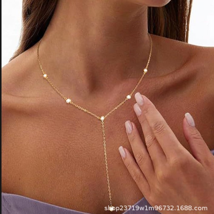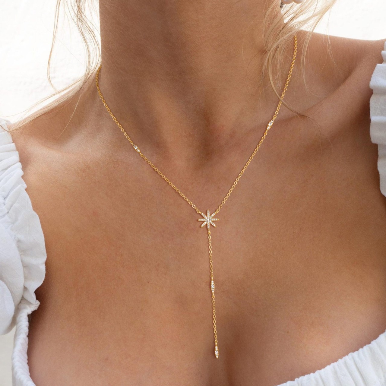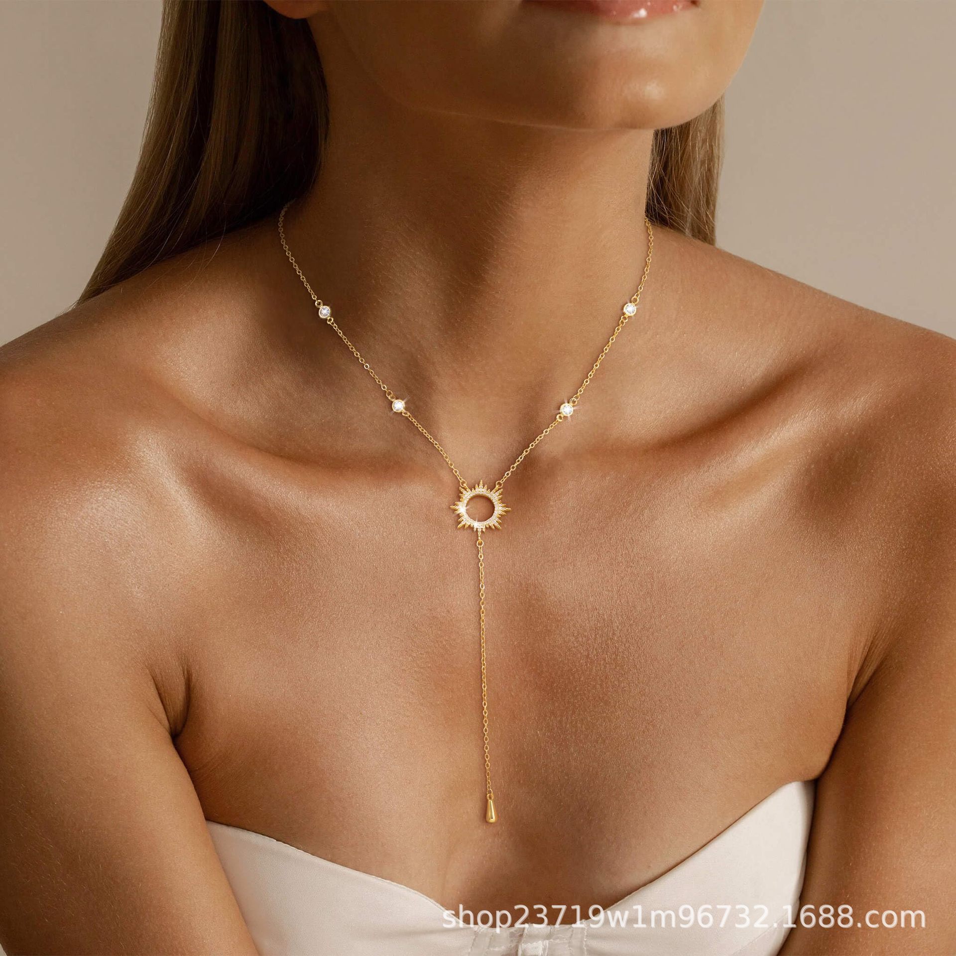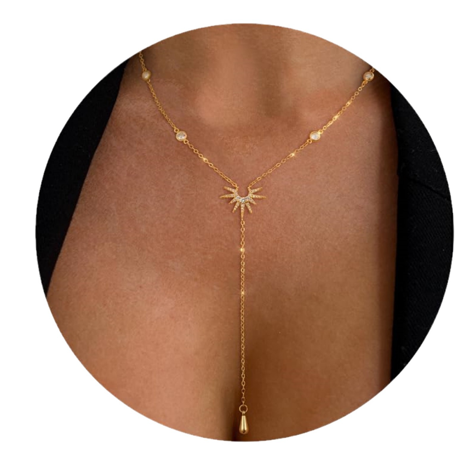 水滴六芒星流苏项链ins时尚自由女神珍珠颈链小众设计Y字链锁骨链