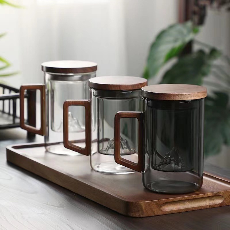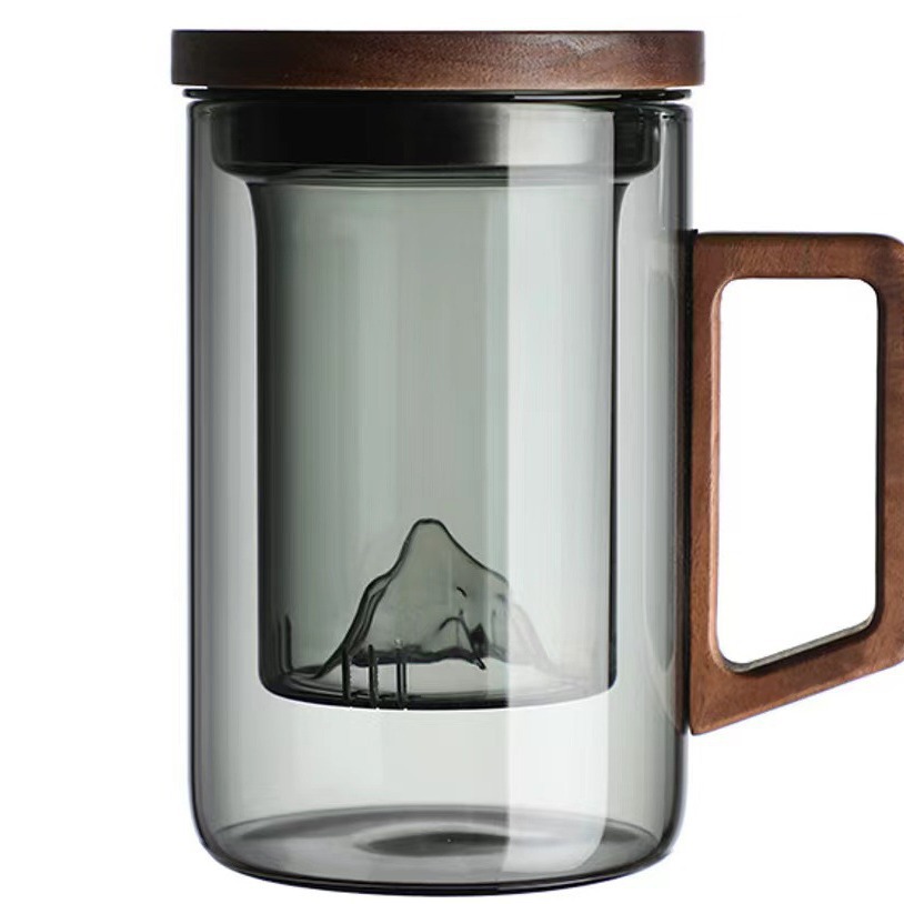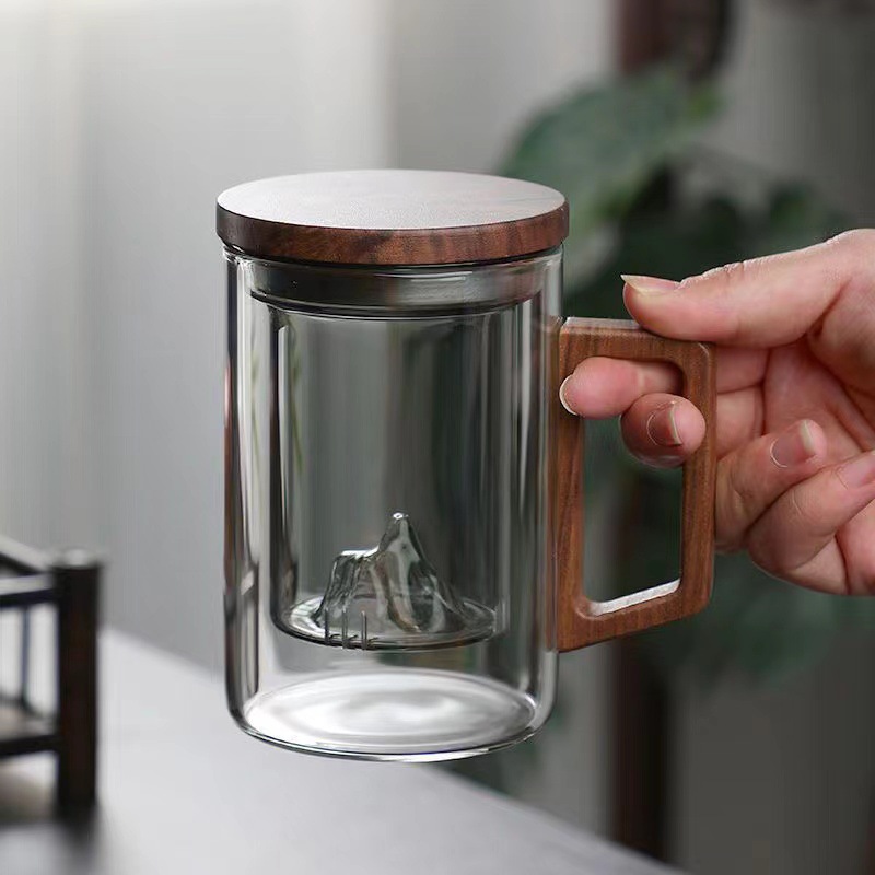 中式观山内胆高硼硅耐热玻璃茶杯茶水分离泡茶杯上班族个人用杯