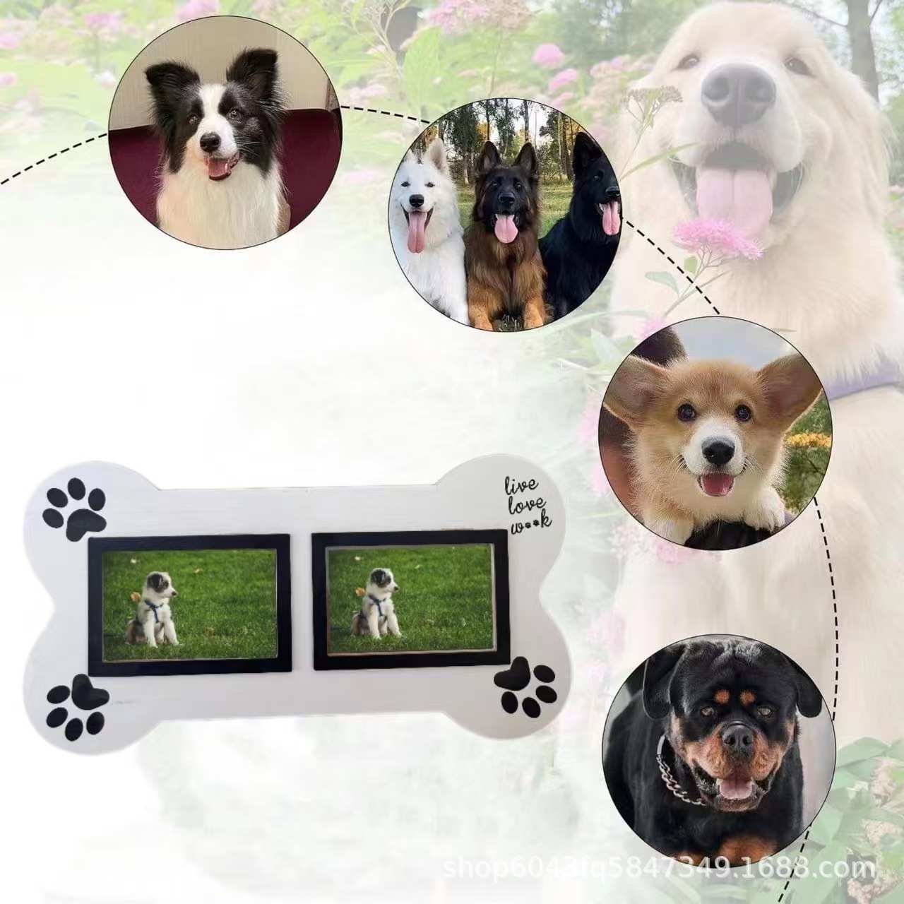 木质狗狗相框独特拼贴画宠物纪念骨头桌面摆件/创意墙面装饰木艺