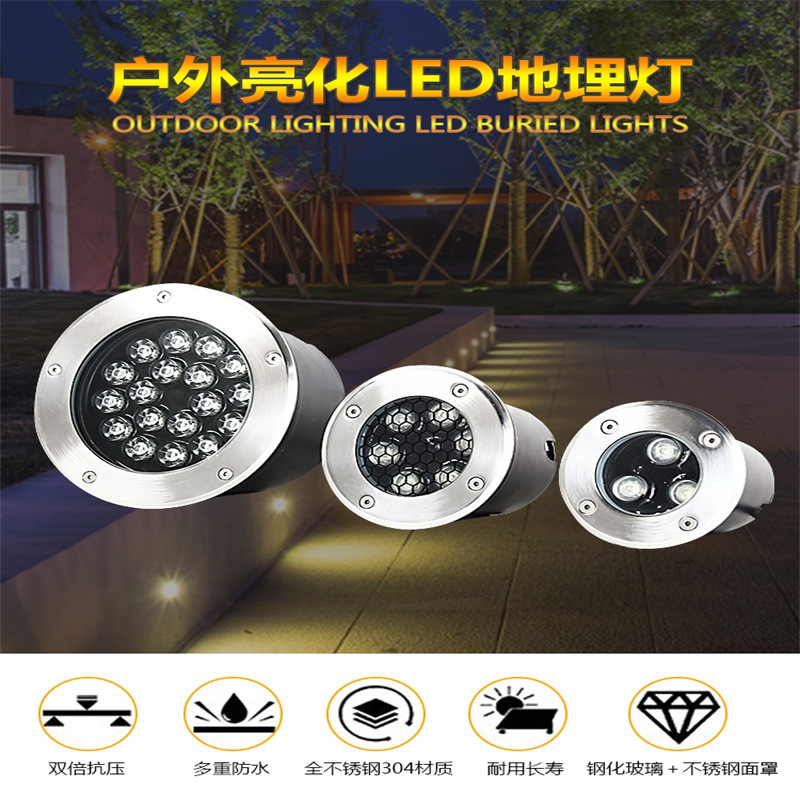 LED地埋灯户外草坪射树灯嵌入墙角台阶景观投光灯地面射灯七彩