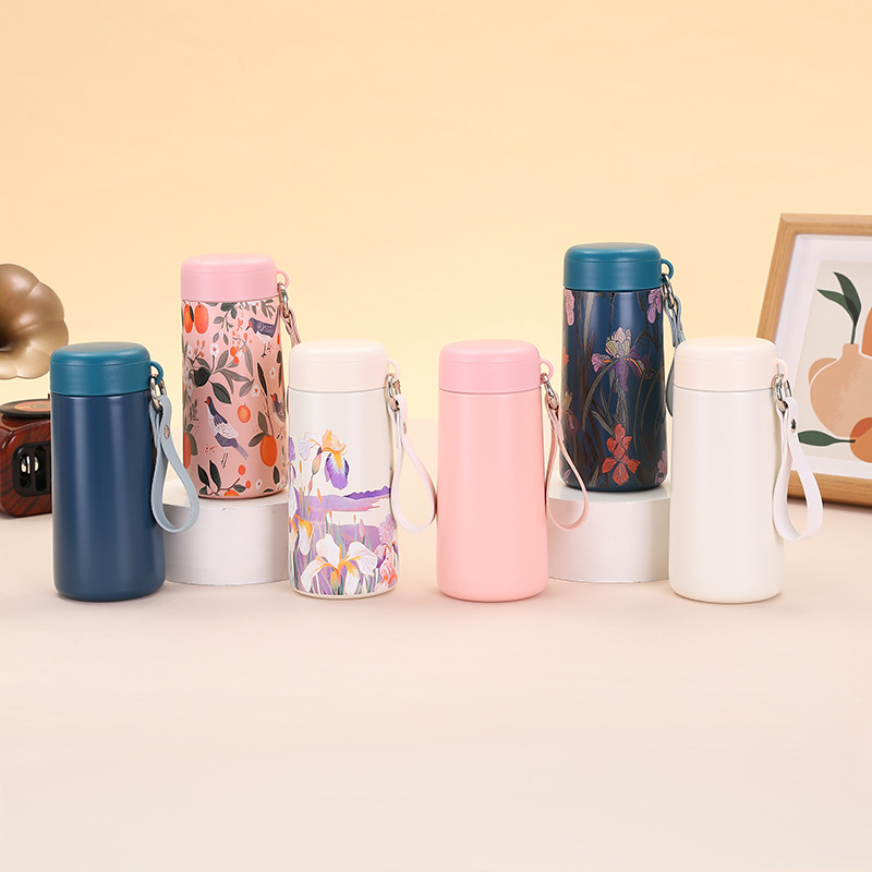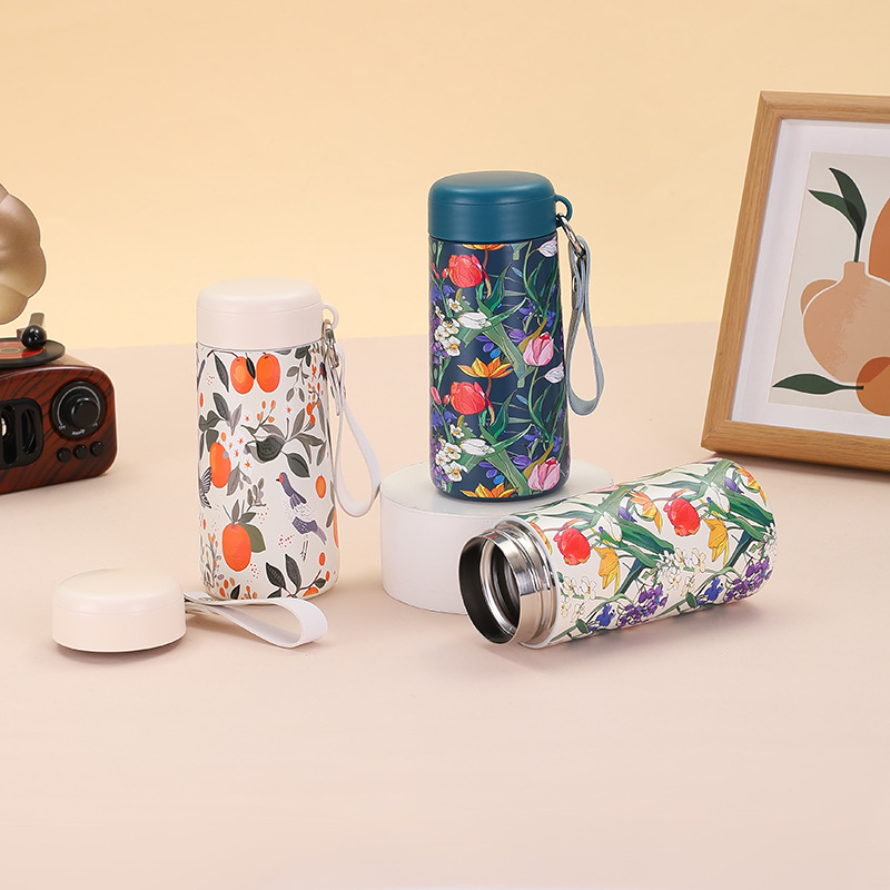 新中式国风大口袋杯304不锈钢真空保温杯高颜值便携提绳随手杯