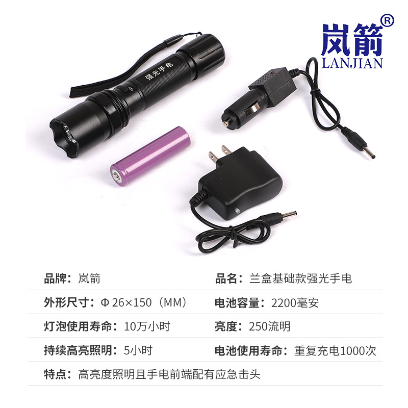 厂家供应强光手电 户外长续航手电 巡逻便携伸缩手电筒