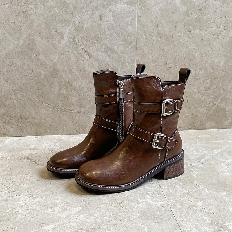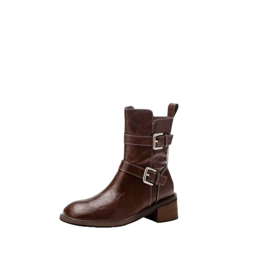 厚底粗跟短靴子2026秋冬皮带扣瘦瘦靴机车马丁靴女