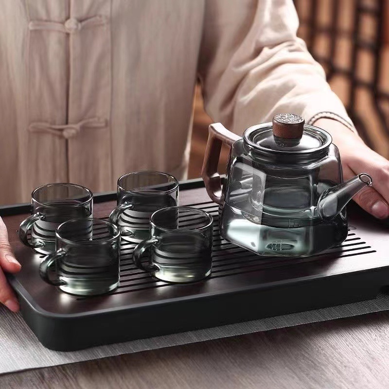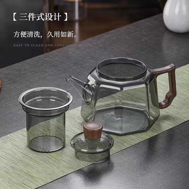 日式加厚耐热玻璃烧水茶壶家用自滤煮茶壶木把玻璃泡茶壶功夫茶具
