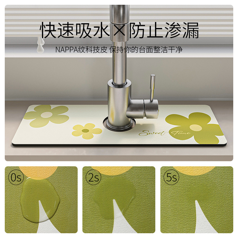 纳帕纹科技皮厨房水龙头沥水垫防霉防溅吸水接水干物垫可裁剪家用