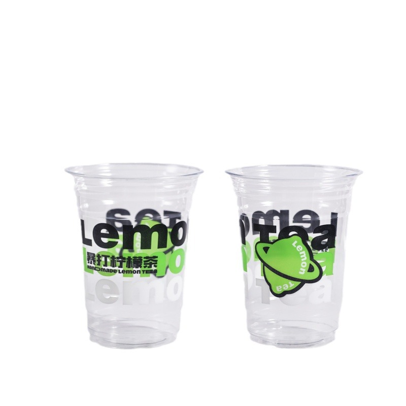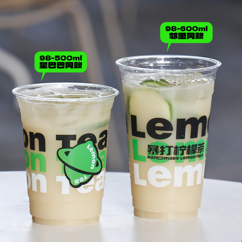 柠檬茶杯子一次性带盖98口径手打柠檬茶500ml摆摊专用杯pet透明杯