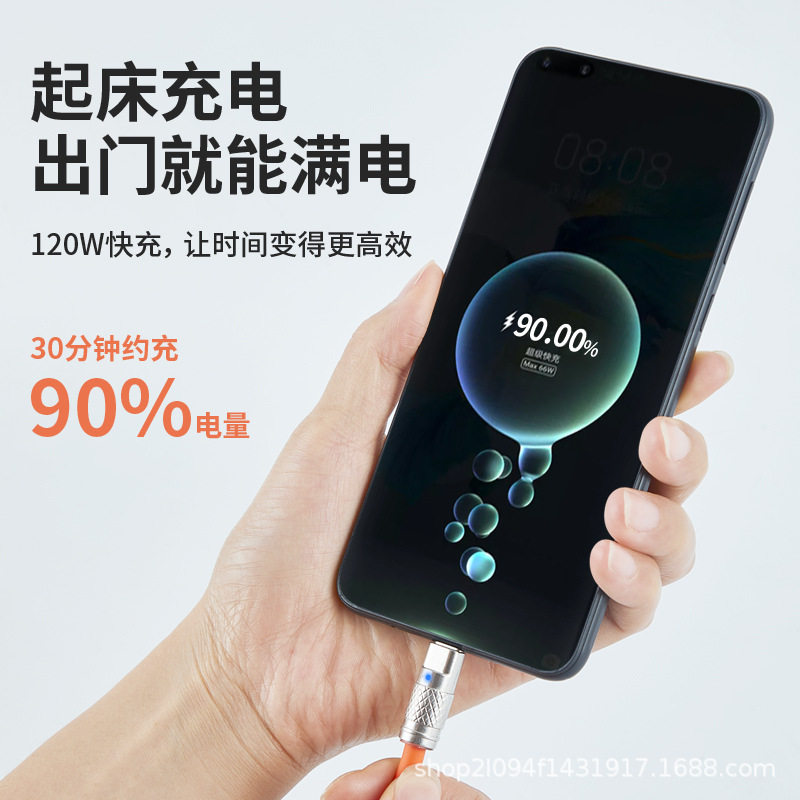 锌合金软硅胶带灯机客线 PD120快充线 适用于苹果TYPE C安卓接口