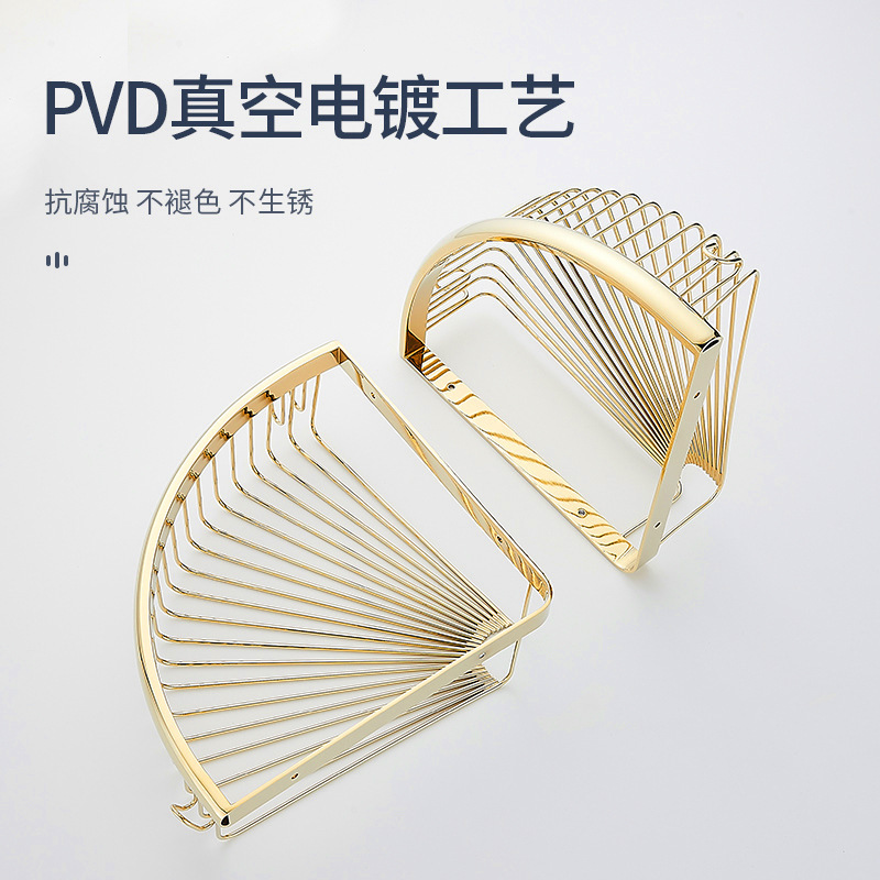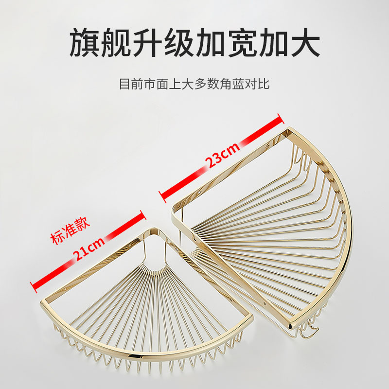 全铜浴室三角网篮卫生间免打孔沐浴露架厕所角架淋浴房转角置物架